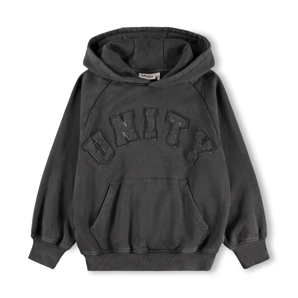 Grá hettupeysa frá Molo með stórum opnum vasa að framan. 100% bómull.