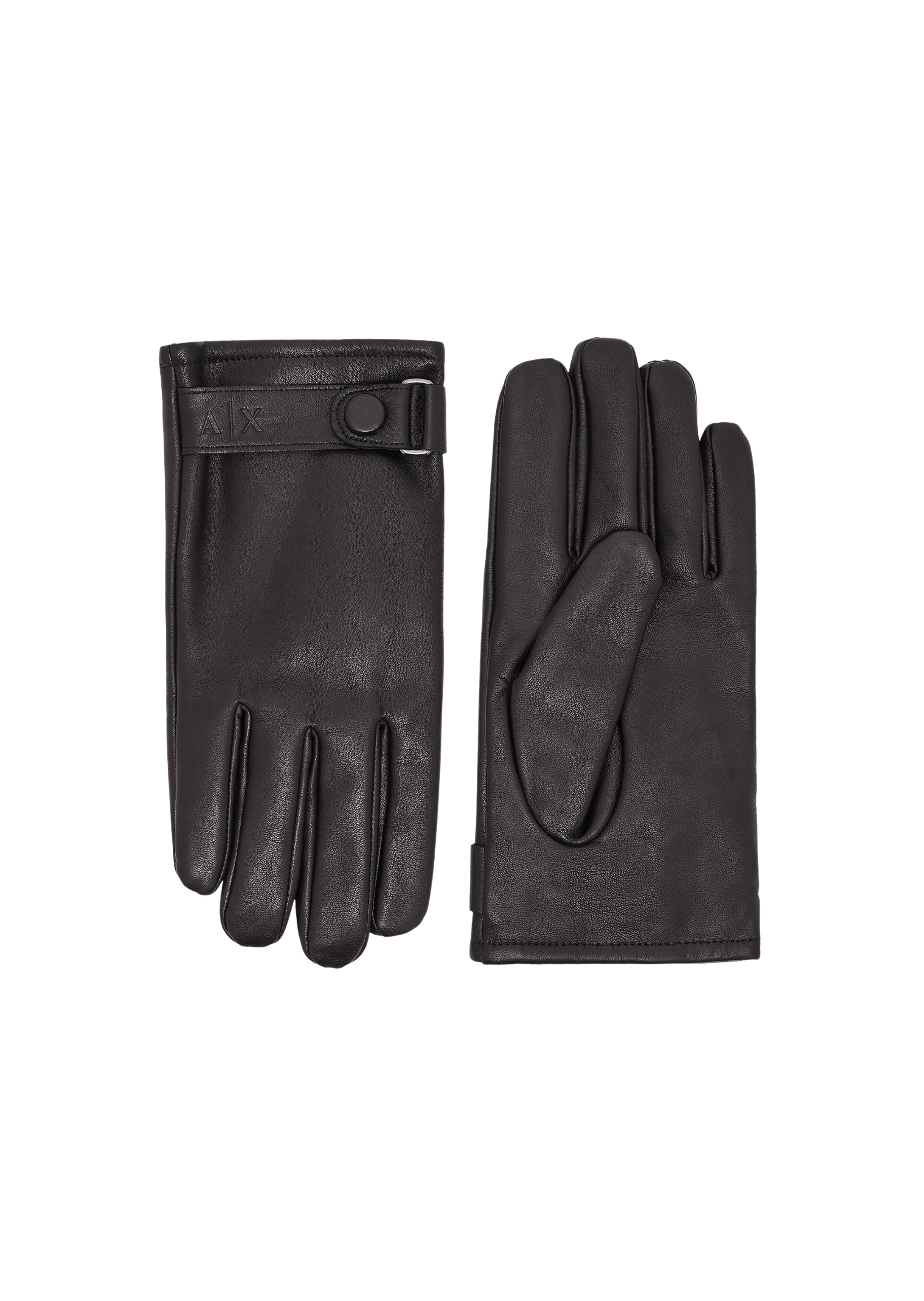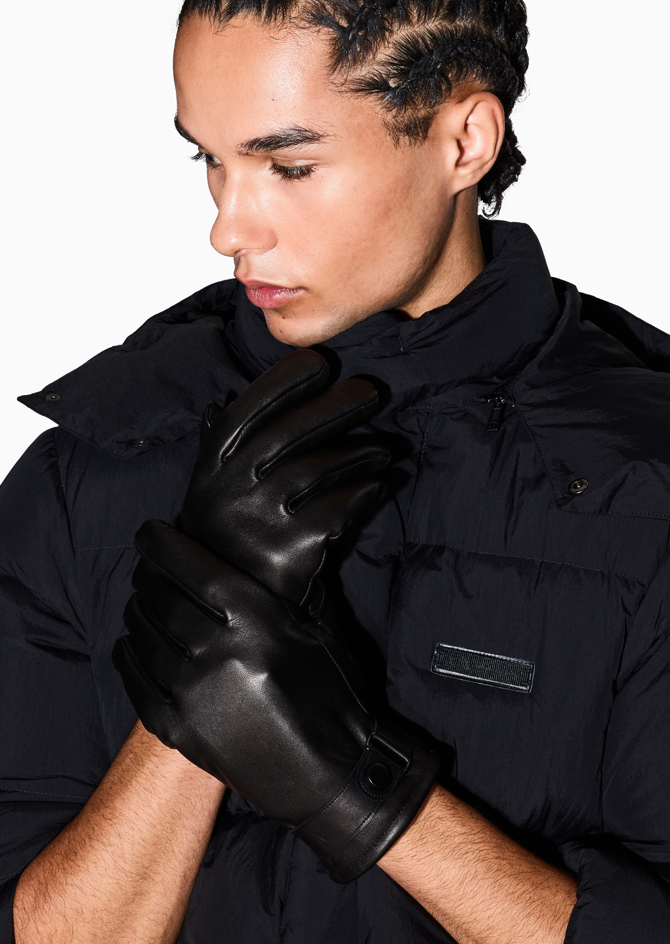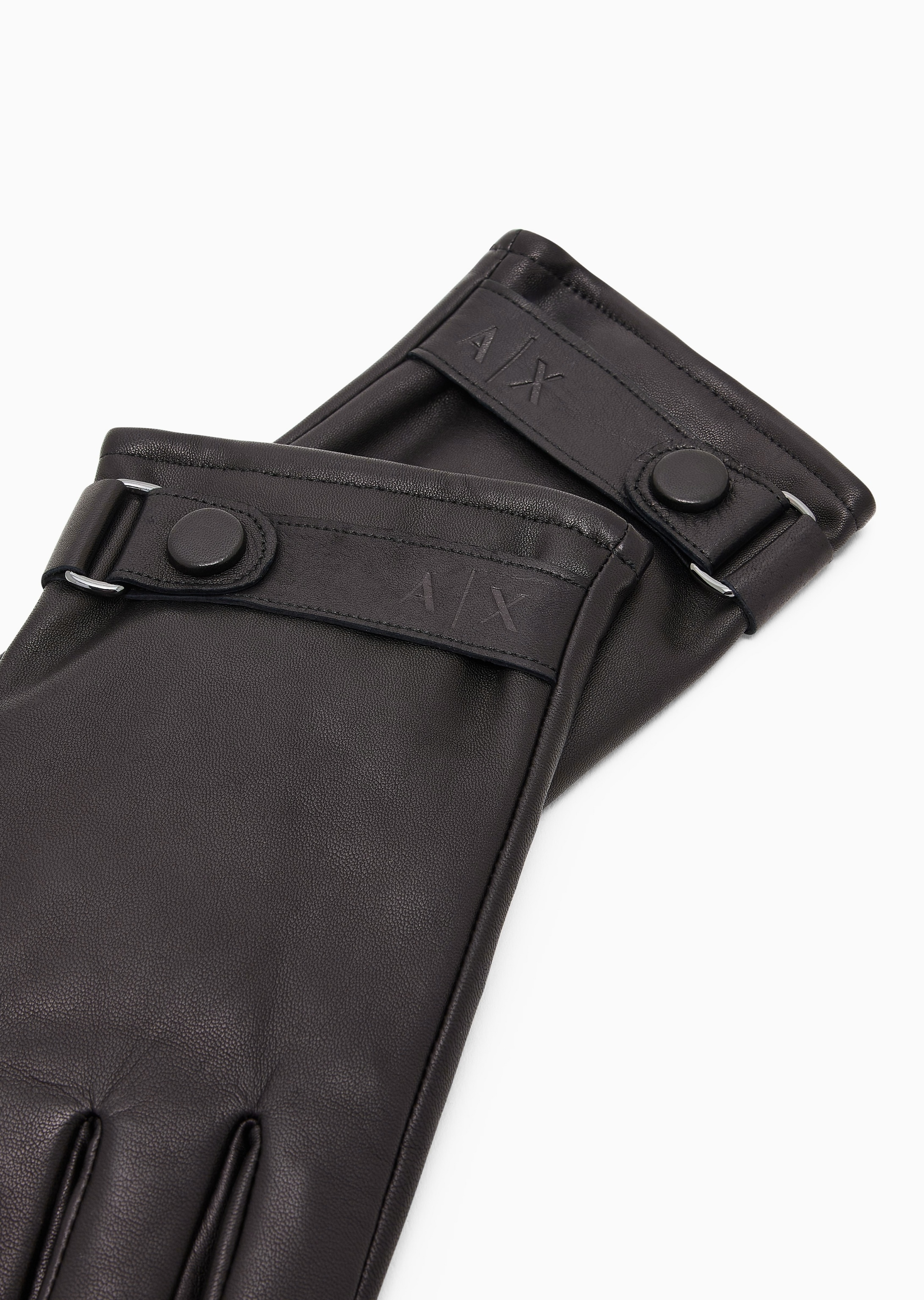 Gloves made of genuine, soft leather with a wrist strap with snap button. Leather gloves Smooth finish Strap with button and logo 100% lamb leather