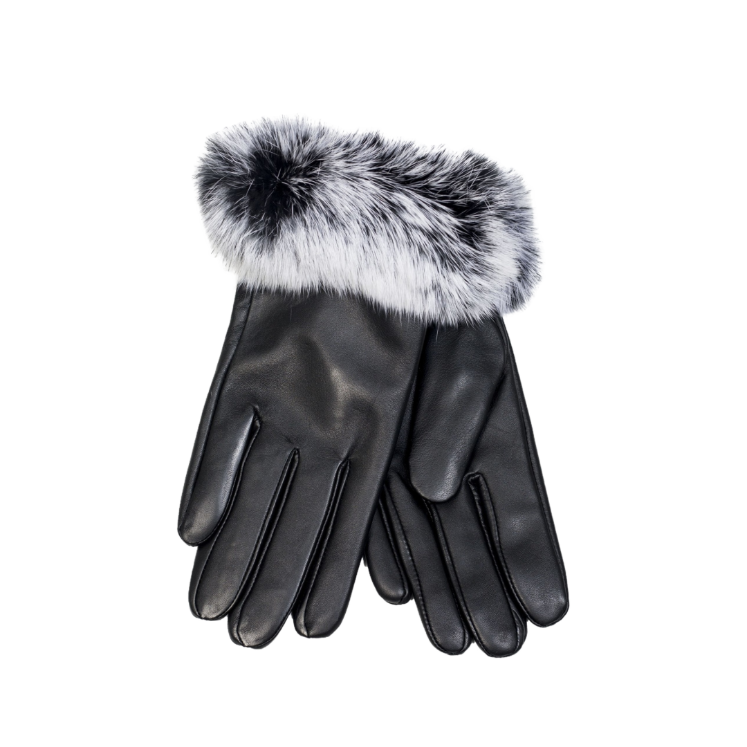 Leðurhanskar úr lambaskinni með lituðu kanínuloði.Stærðir: 6-9Fyrir dömur | Rán leðurhanskar með hvítu og svörtu loði
