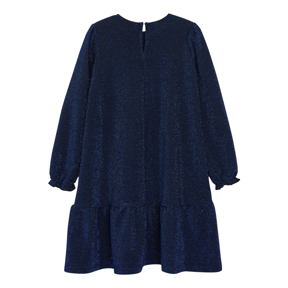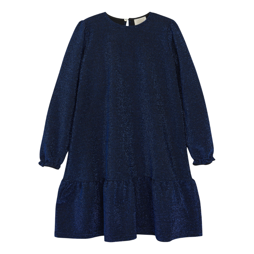 Fallega blár glimmer kjóll rá Creamie með löngum ermum. 58% nylon, 35% metallic fibres og 7% elastane.