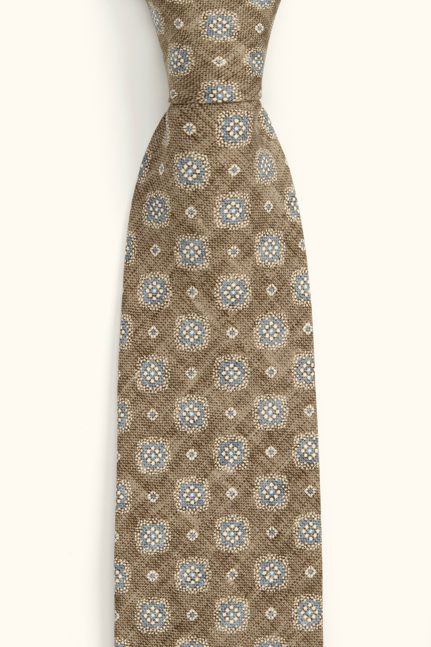 A woven tie in 100% wool with a detailed floral motif. The natural sheen of the silk gives an elegant look, perfect for adding subtle character to both a shirt and a jacket. Made in Italy Silk 100%