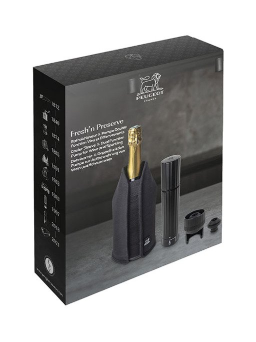 Peugeot Preserve Duo & Frizz – Vín- og kampavínsett Njóttu hverrar einustu kolsýrubólu og dropa af ferskleika! Peugeot sameinar hér tvo snjalla aukahluti sem gera vín- og kampavínsupplifunina ... Sjá nánar