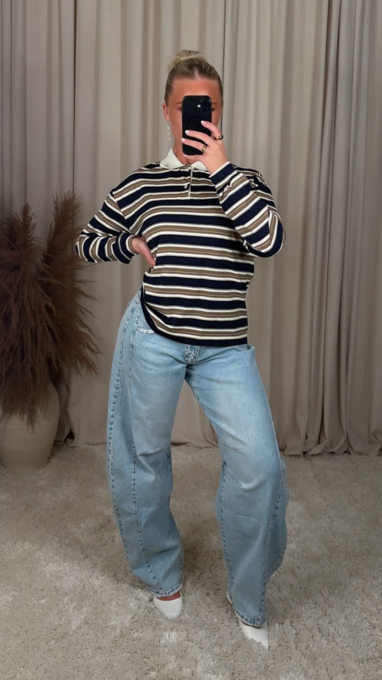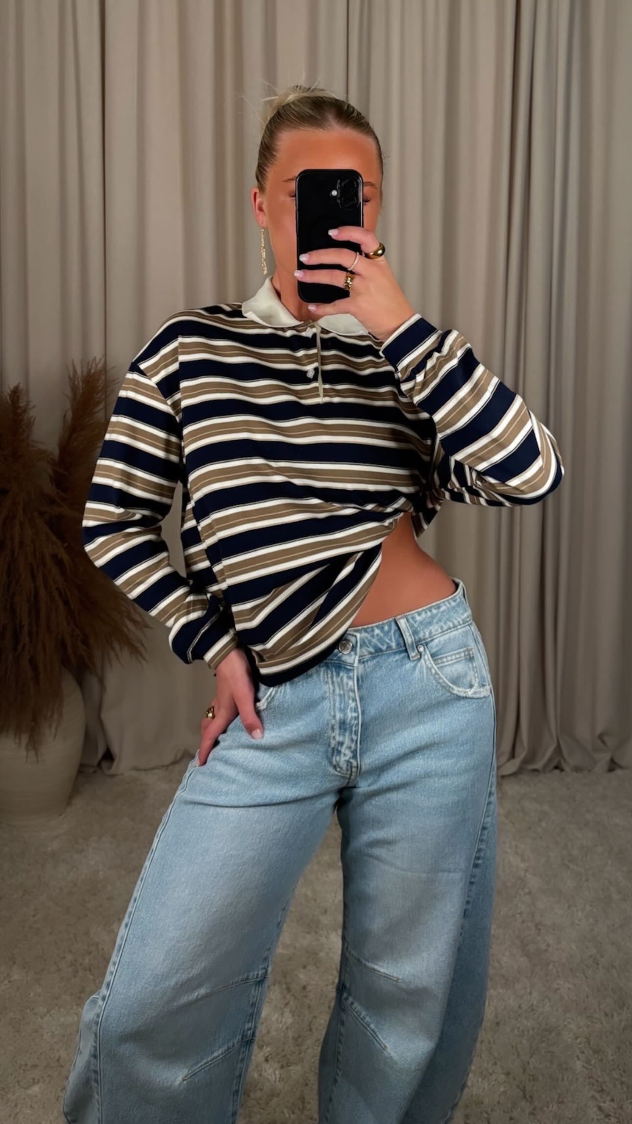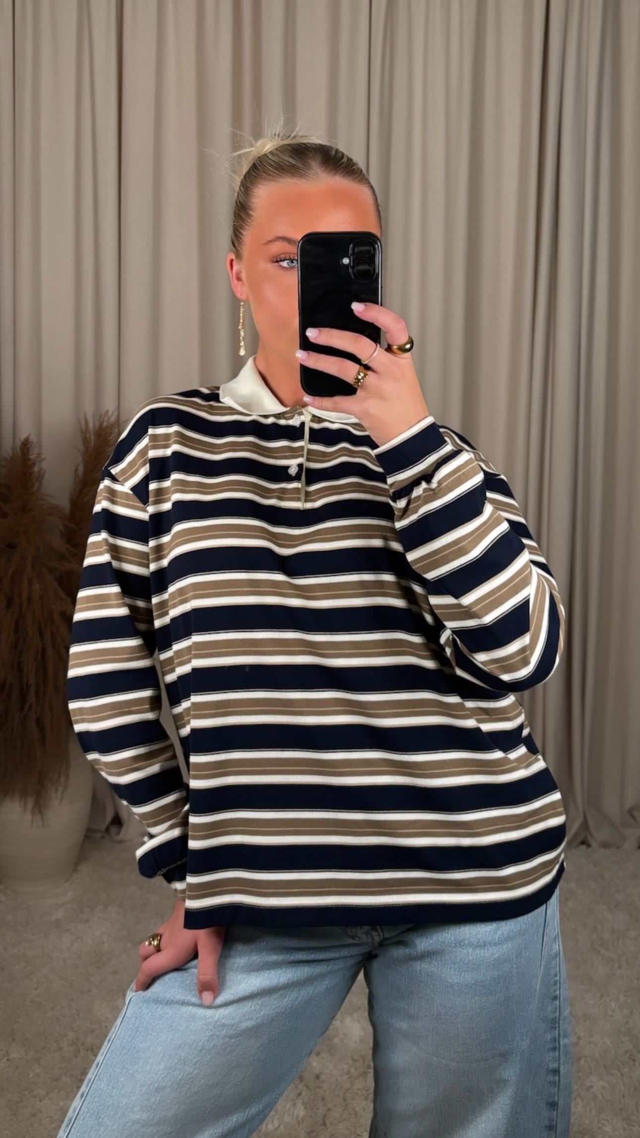 Æðislega flottur bolur úr 100% bómull, það er smá teygja í efninu og er oversized í sniði modelið er 168cm og er í stærð S