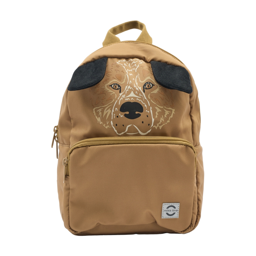 Sætur bakpoki frá Mikk-Line með stóru, renndu hólfi og litlu, renndu auka hólfi að framan.