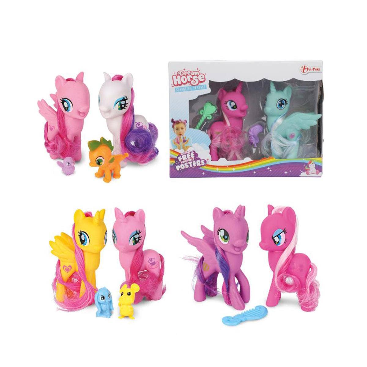 Skemmtilegt pónýhestasett með 2 pónýhestum og fylgihlutum.