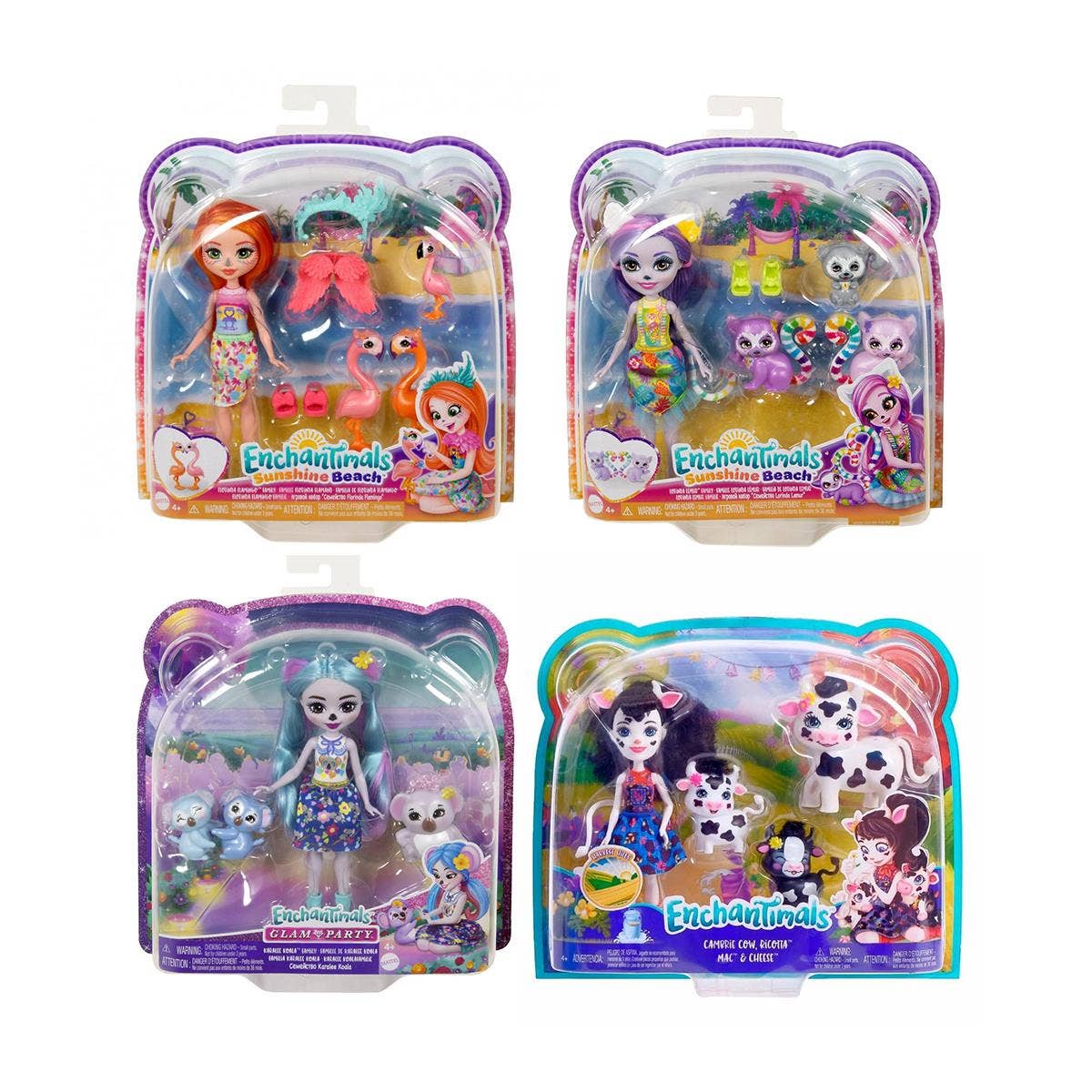 Skemmtilegt Enchantimals dúkkusett með dýrafjölskildu.