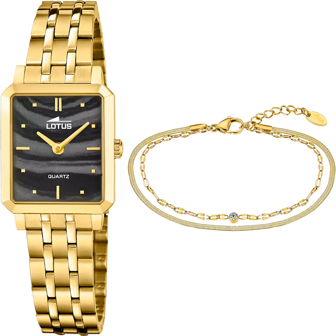 Úr: Úrkassi: 22mm – gyllt stál Úrverk: Rafhlaða Vatnsvörn: 50M Skífa: Svört – vísar Gler: Hert gler Keðja: Gyllt stál Ábyrgð: Tveggja ára Armband: Efni armbands: Gyllt stál