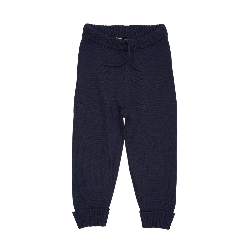 Dökk bláar merino ullarbuxur frá Copenhagen Colors. Buxurnar eru dasamlega mjúkar og einstaklega þægilegar. Buxurnar er bundnar í mittið og með uppábroti við skálmar. Virkni, þægindi og ... Sjá nánar
