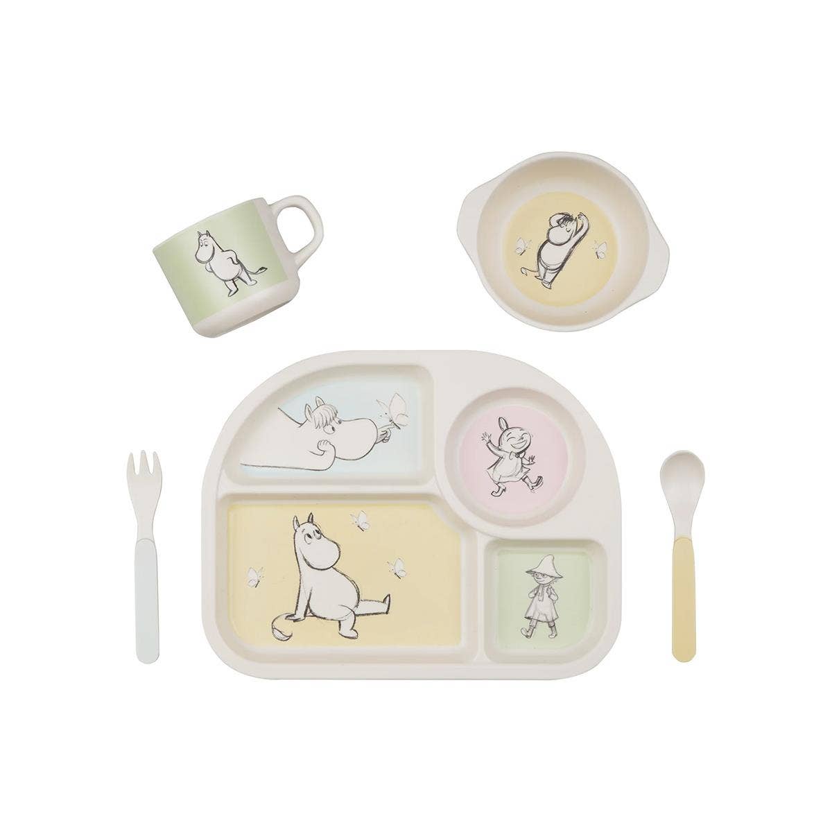 Flott borðbúnaðarsett með Múmínálfamyndum.