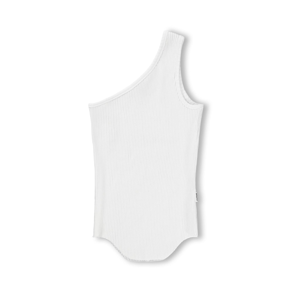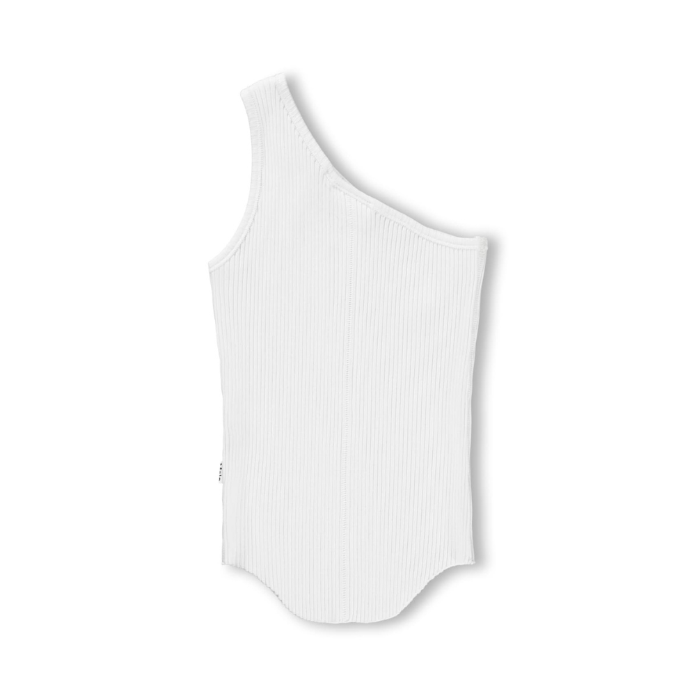 Hvítur hlýrabolur með skáermi. 95% bómull og 5% elastane.