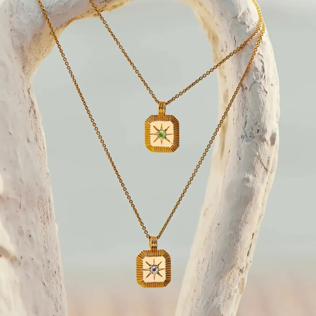 Efni mens og keðju: 18kt gullhjúpað silfur Lengd keðju: 41cm upp í 45cm Mánuður: Júní Steinn: Náttúrulegur tunglsteinn (e. moonstone) Stærð mens: 12.2mm x 11mm x 1.8mm