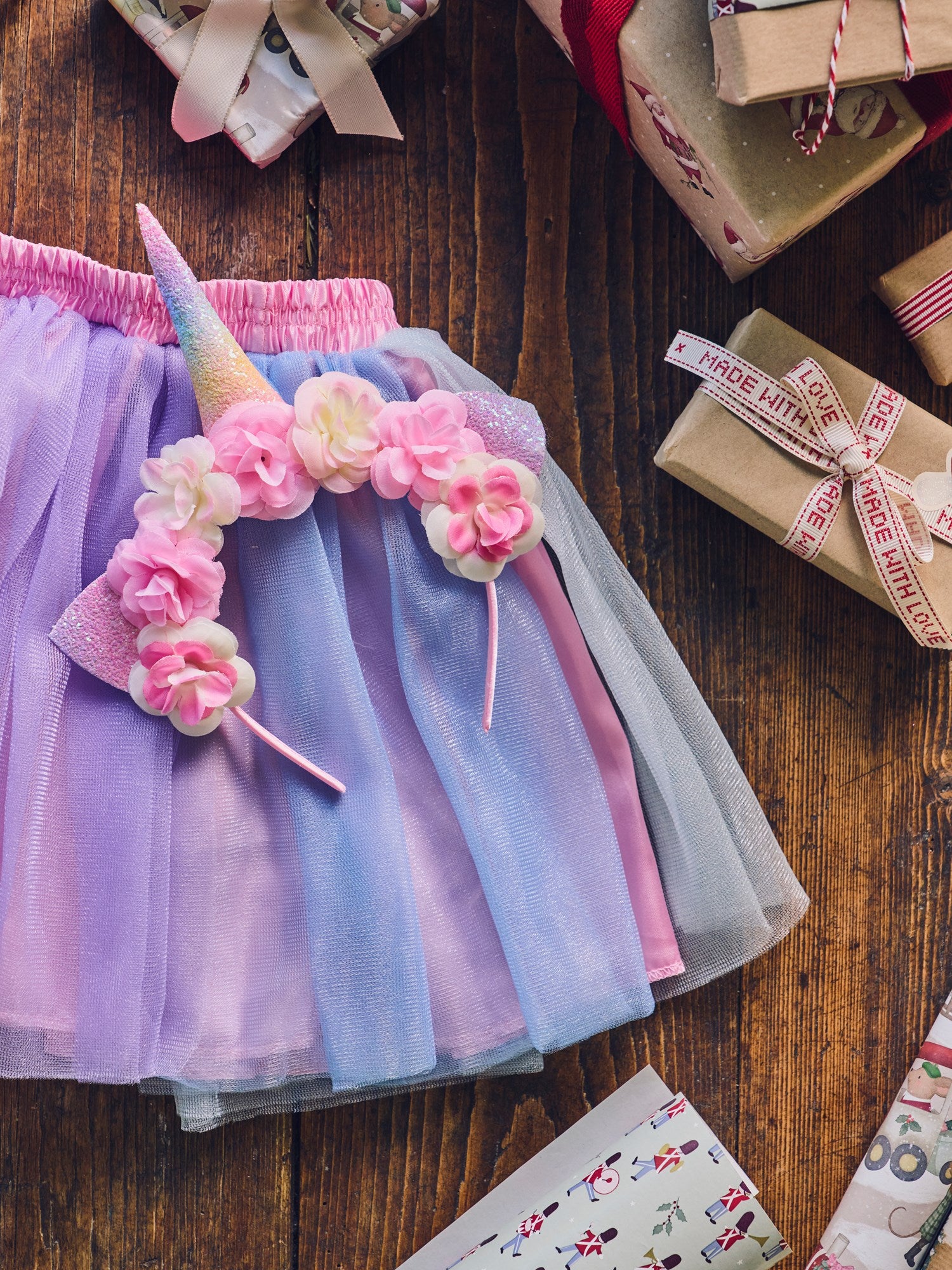 Whimsical dress-up "Such delightful colours for a day of imaginative play," Clara says, watching the nieces twirl in their unicorn costumes. Anna continues, "A magical ensemble for their ... Sjá nánar