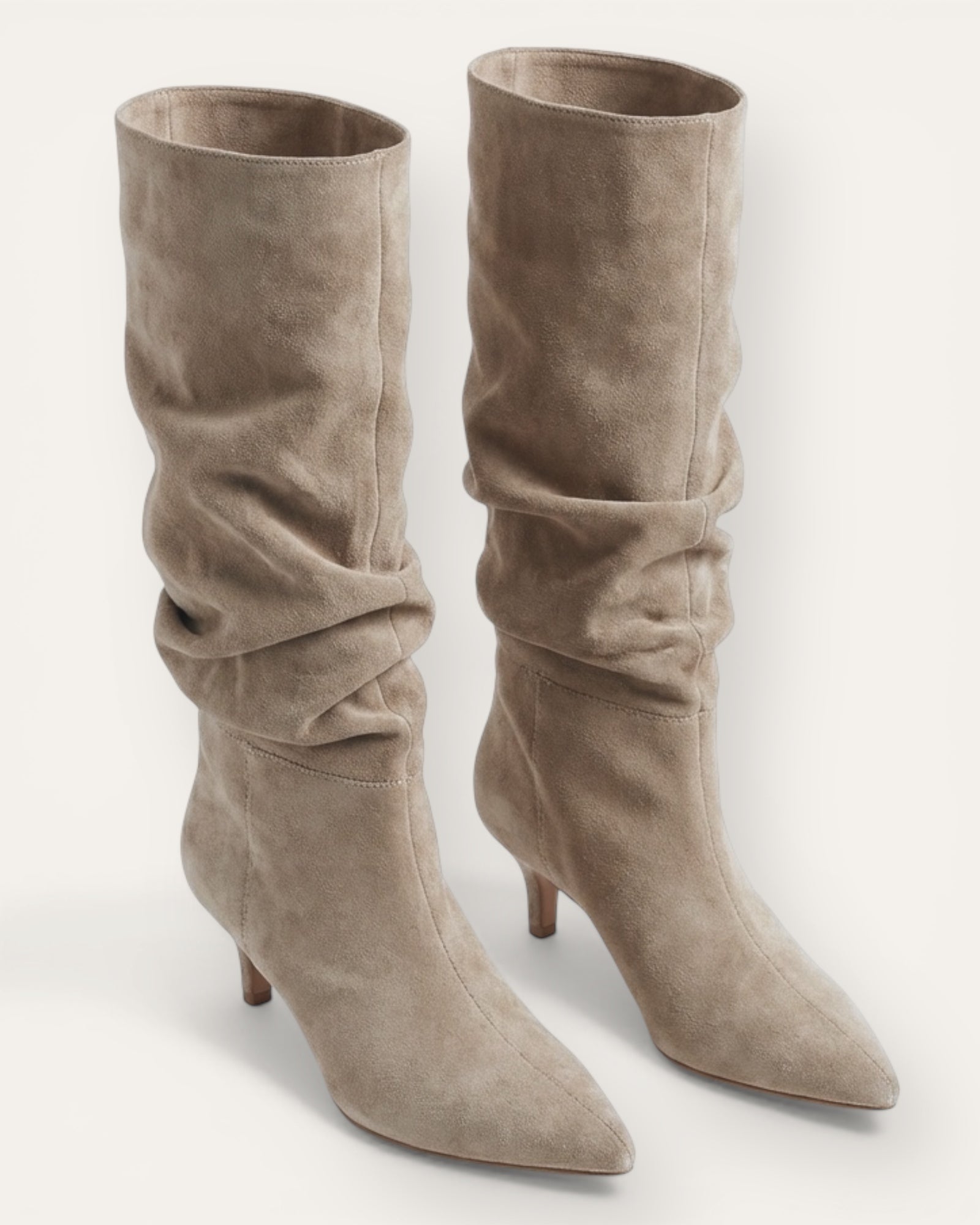 Glæsileg krumpuð stígvél sem gefa klæðnaðinum strax fágað og töff útlit. Stígvélin eru með oddmjórri tá og fallegum hæl sem lengir fallegar línur fótsins. Skaftið er krumpað sem gefur ... Sjá nánar