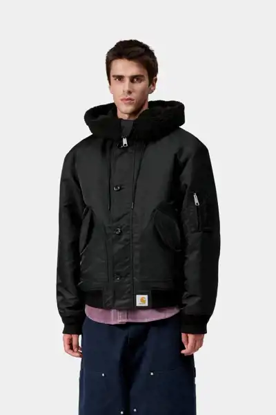 Hlýr og töff jakki frá Carhartt WIP. Jakkinn er fóðraður að innan og með hettu sem hægt er að stilla eftir þörfum.