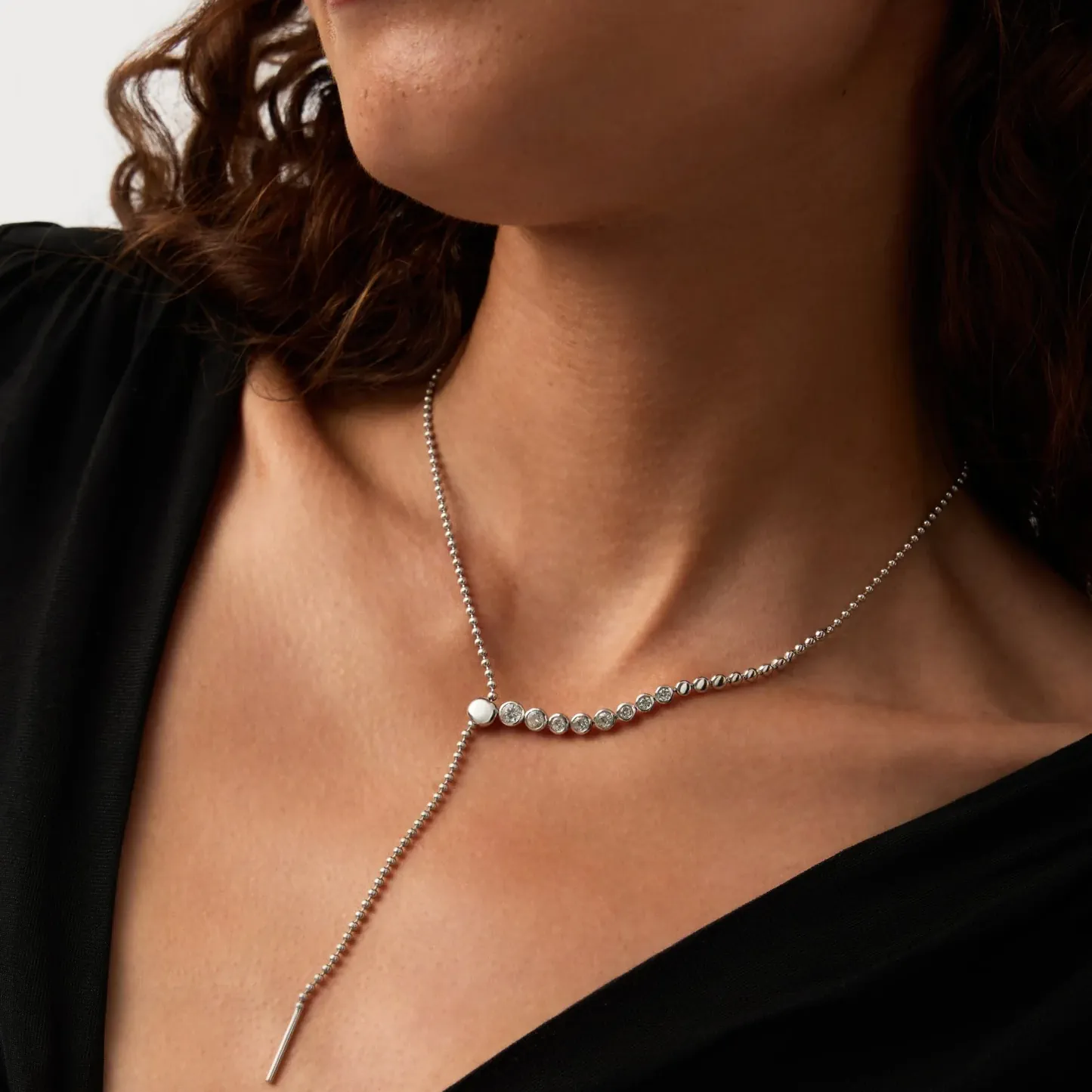 Efni hálsmens/keðju: Rhodiumhúðað silfur Lengd keðju: Allt að 50cm Breidd keðju: 2mm til 6mm Steinar: Zirkonia