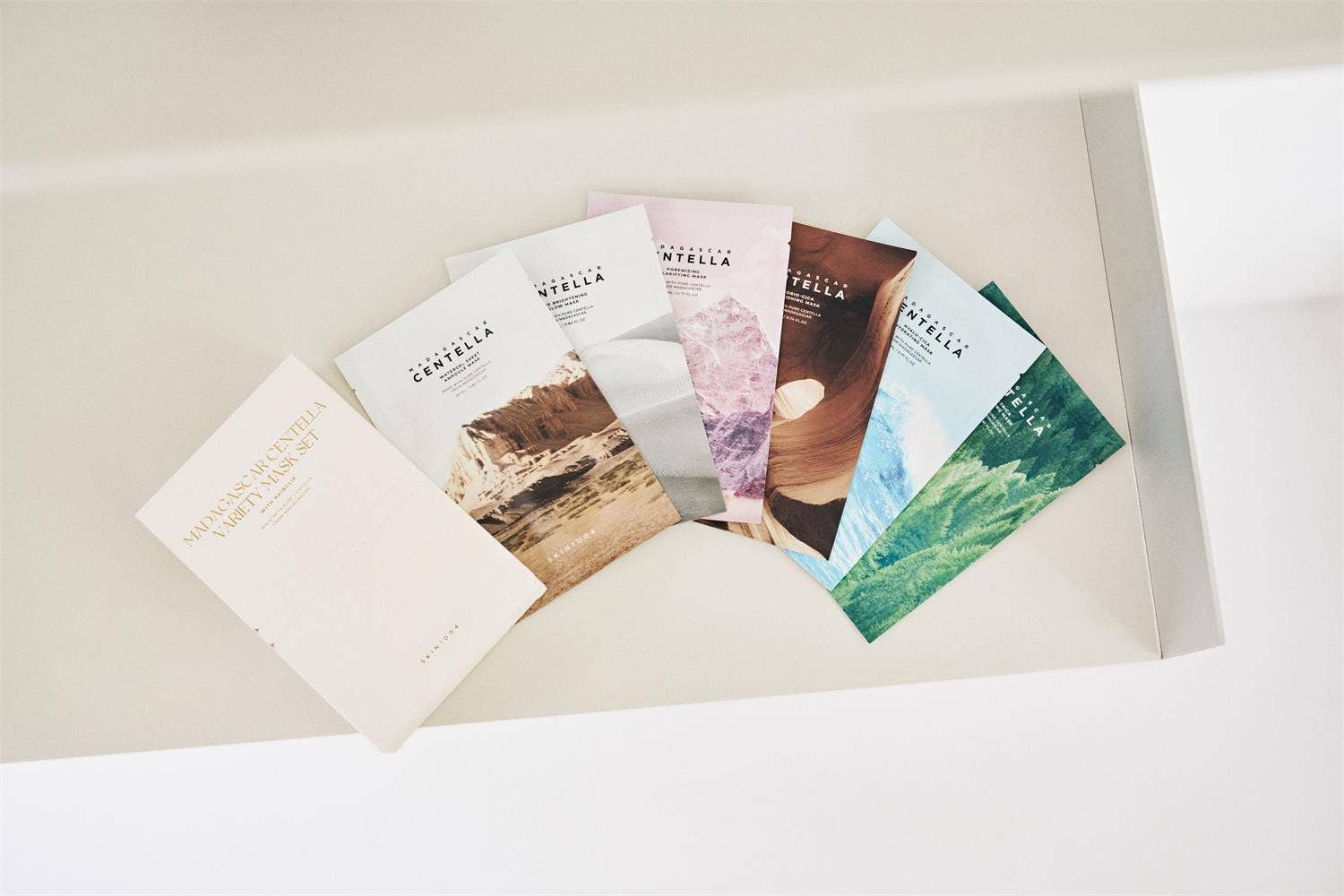 Maskasettið Centella Variety Mask Set inniheldur 6 mismunandi andlitsmaska með Centella Asiatica og virkum innihaldsefnum sem miða að mismunandi þörfum húðarinnar.