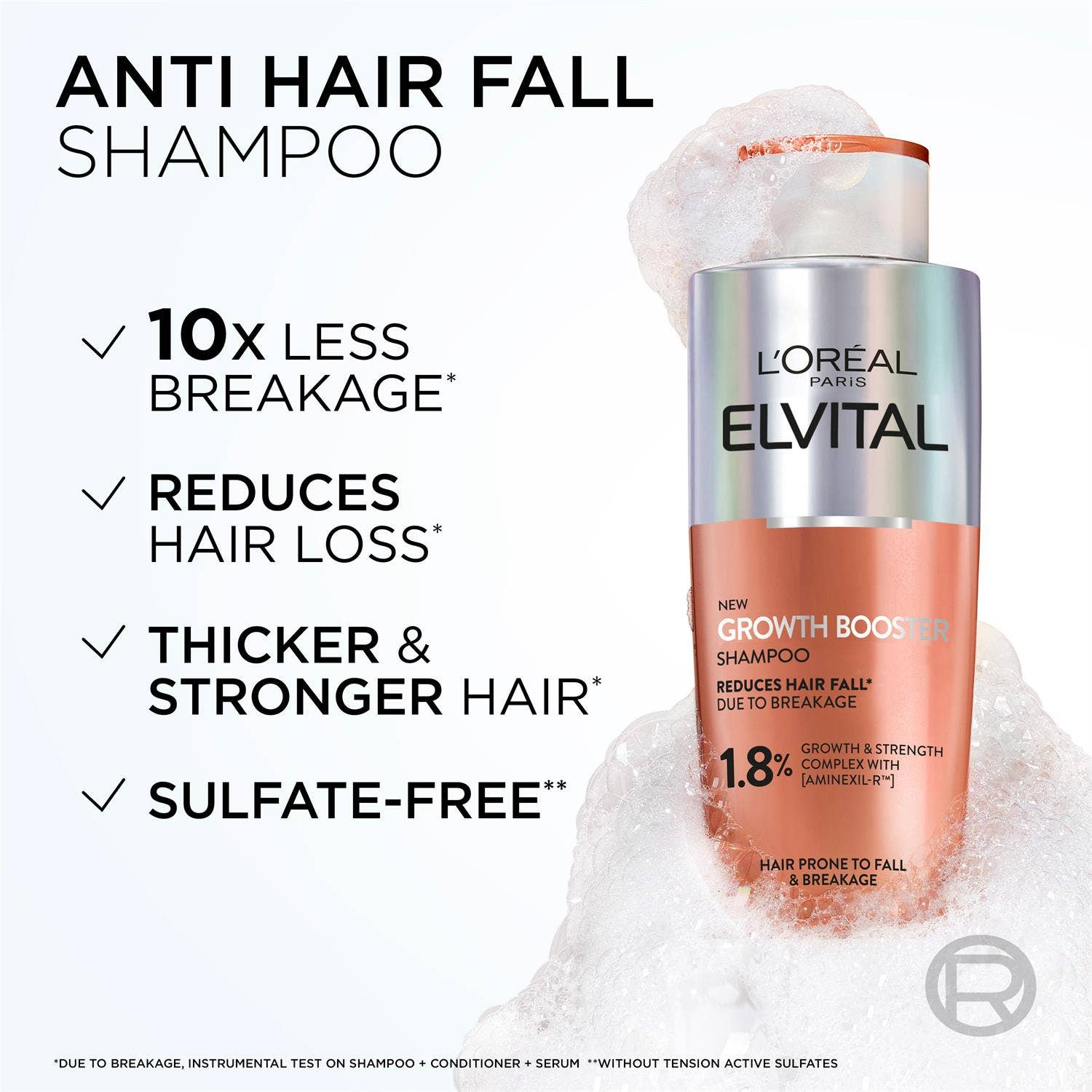 Elvital Growth Booster sjampó frá L’Oréal Paris styrkir hárið, dregur úr hárlosi vegna slits og lengir lífsferil þess.