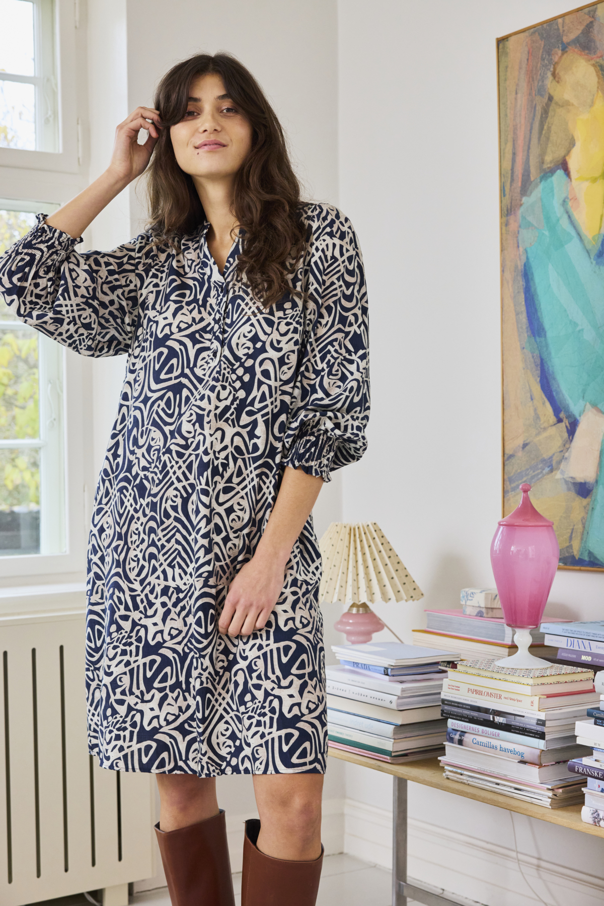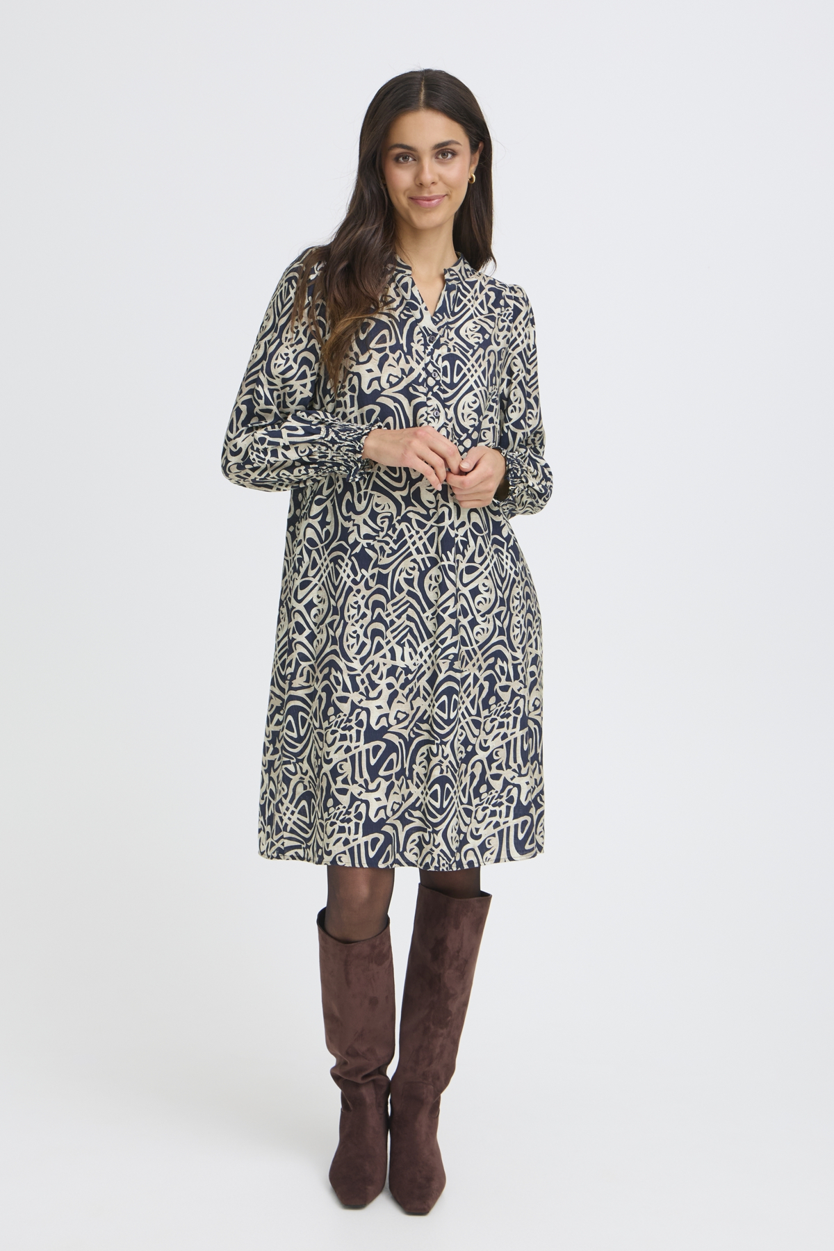 Fallega mynstraður kjóll með vösum frá FRANSA. Stærðirnar eru nokkuð hefðbundnar hjá FRANSA og er mælt með því að rétt stærð sé tekin, ekki minni eða stærri.