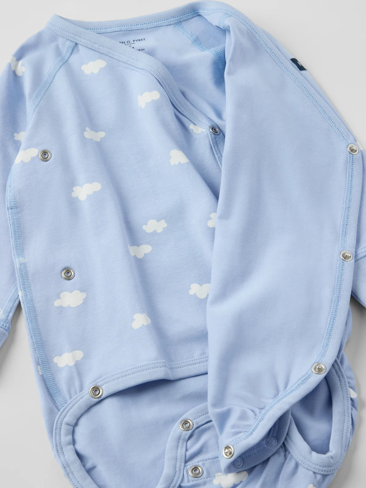 Extendable wrapover body, clouds Soft and comfy for growing little ones Extendable crotch and sleeves Wraparound babygrow in organic cotton. Thanks to the clever solution featuring an extra ... Sjá nánar