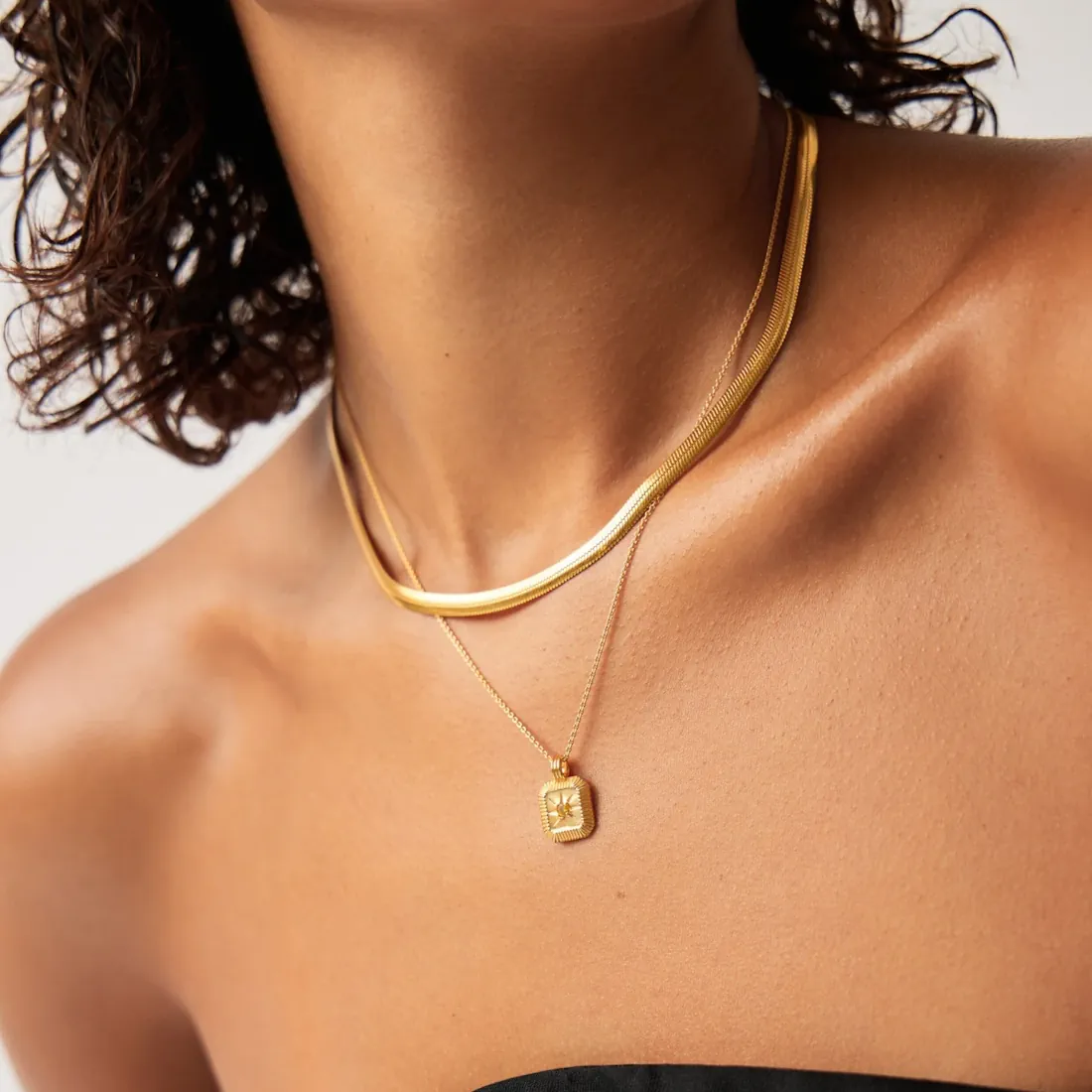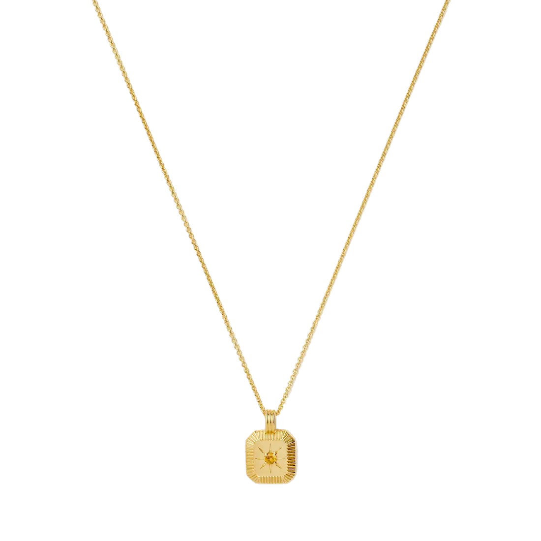 Efni mens og keðju: 18kt gullhjúpað silfur Lengd keðju: 41cm upp í 45cm Mánuður: Nóvember Steinn: Náttúrulegt sítrín Stærð mens: 12.2mm x 11mm x 1.8mm