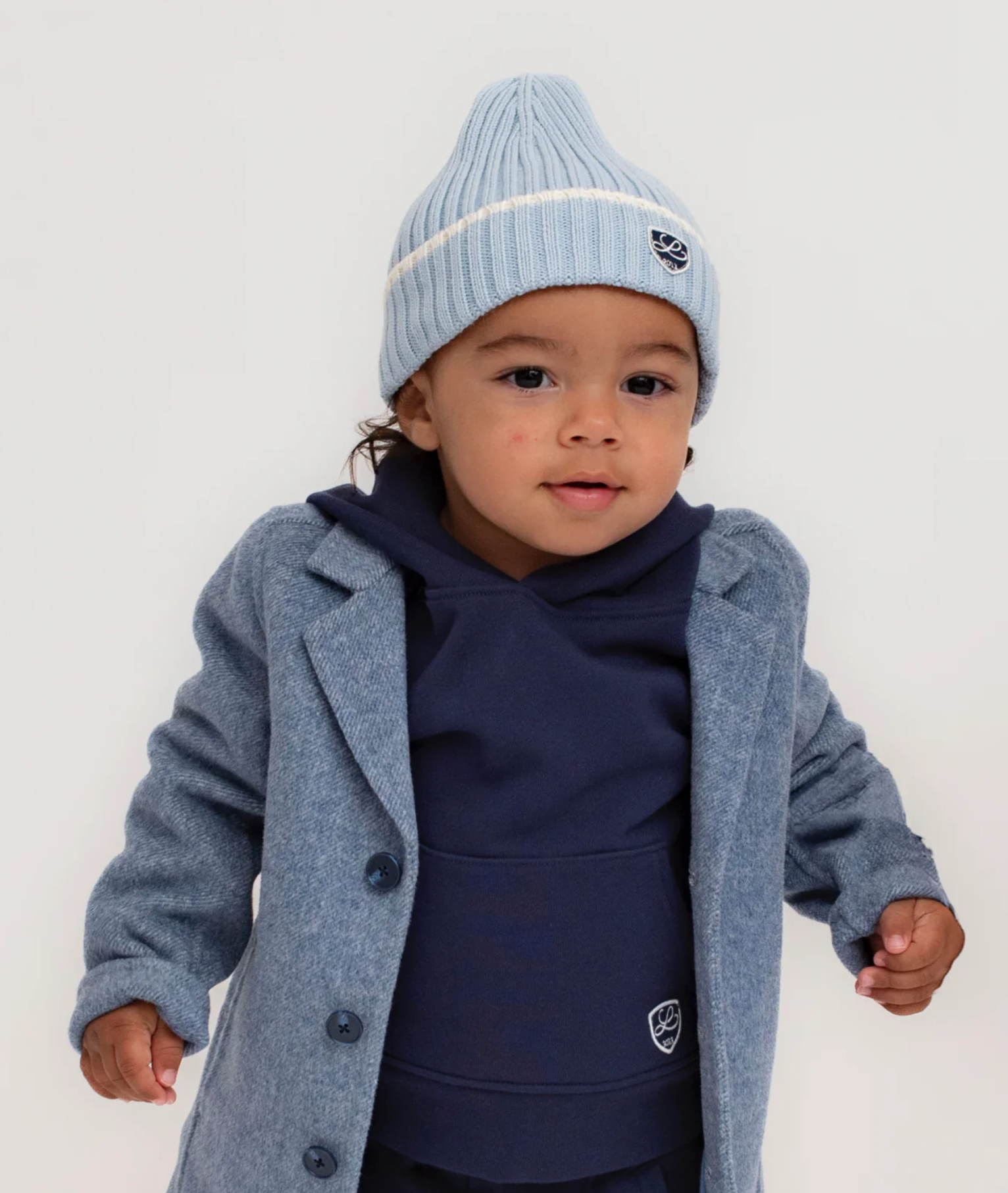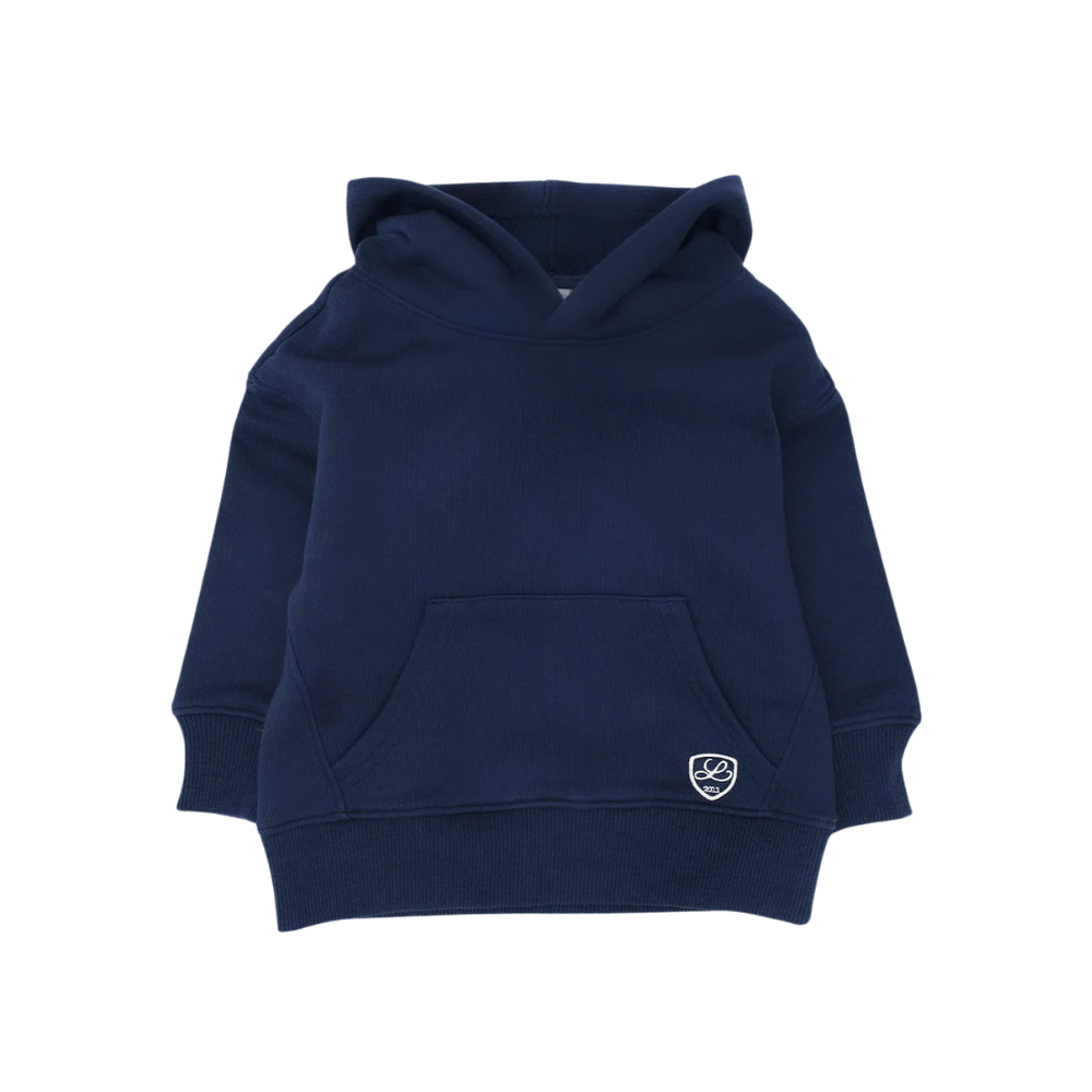 Blá hettupeysa frá Livly. 70% bómull, 30% pólýester.
