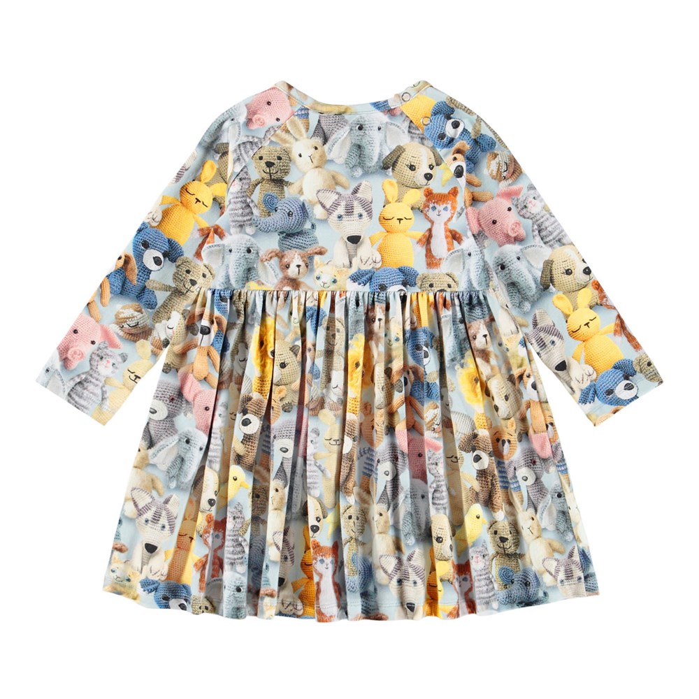 Mynstraður, langerma Molo kjóll með víðu pilsi. 95% bómull og 5% elastane.