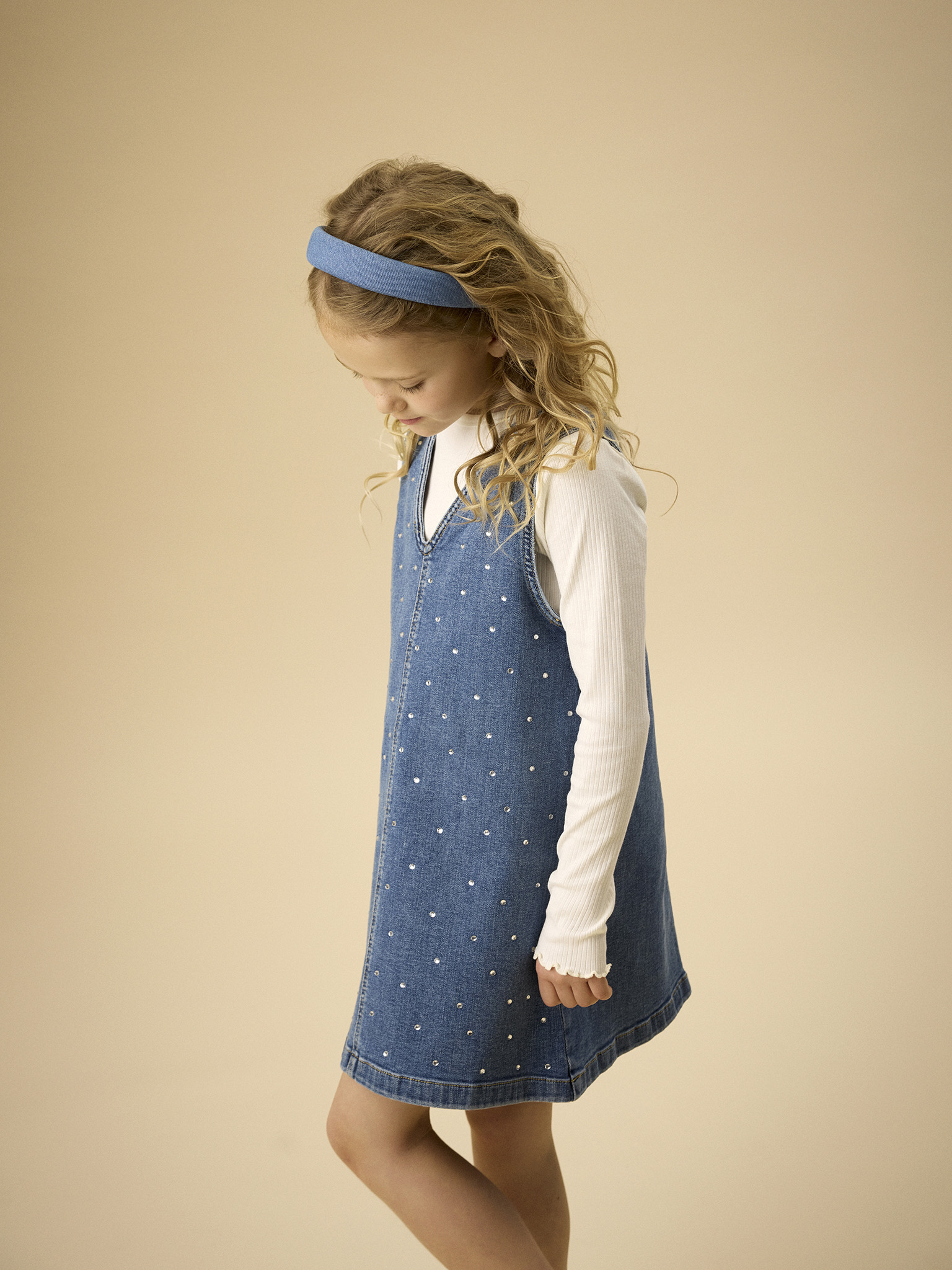 Ermalaus gallajkjóll með v- hálsmáli og skrautsteinum. 99% bómull og 1% elastane.