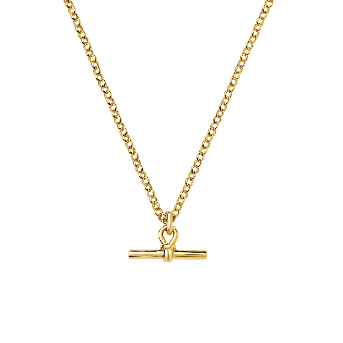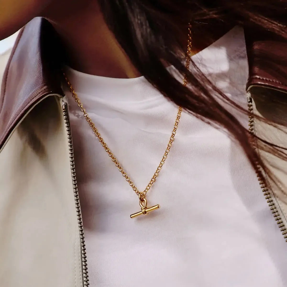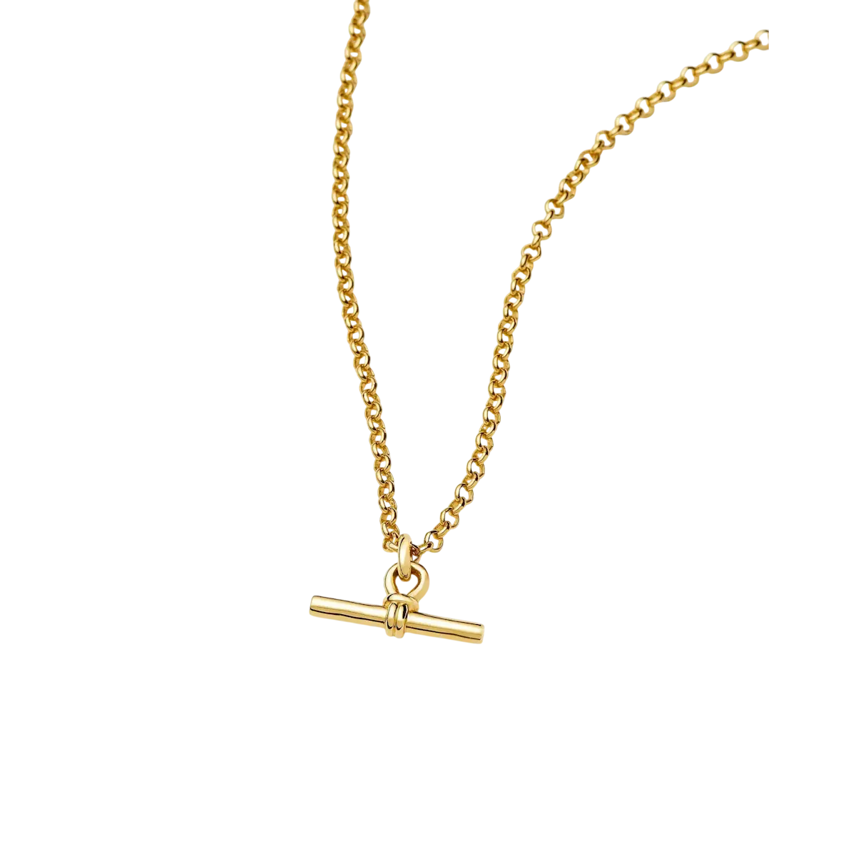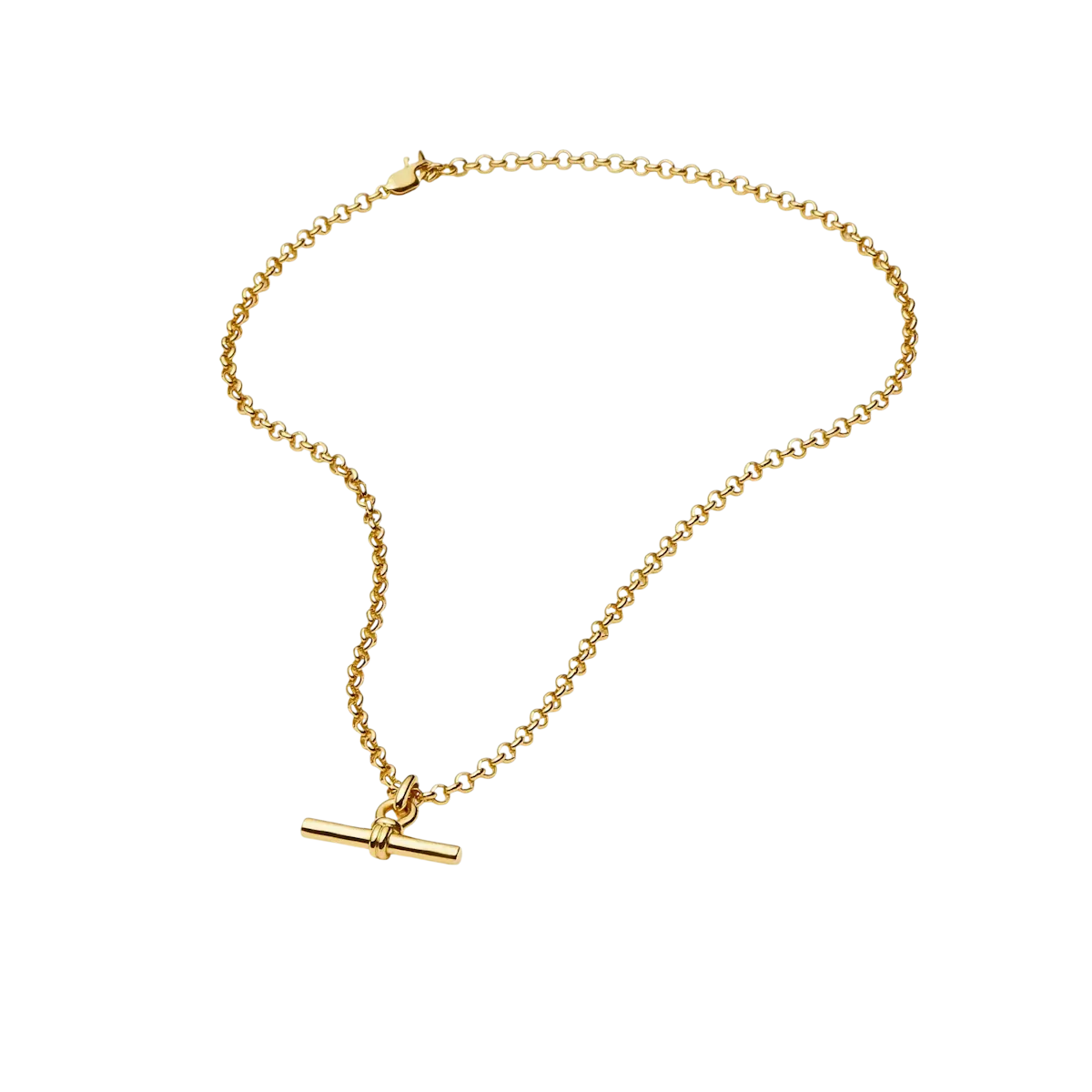 Efni keðju: 18kt gullhúðað látún Lengd keðju: 46cm upp í 50cm Efni mens: 18kt gullhúðað látún Stærð mens: 19.5mm x 29.4mm