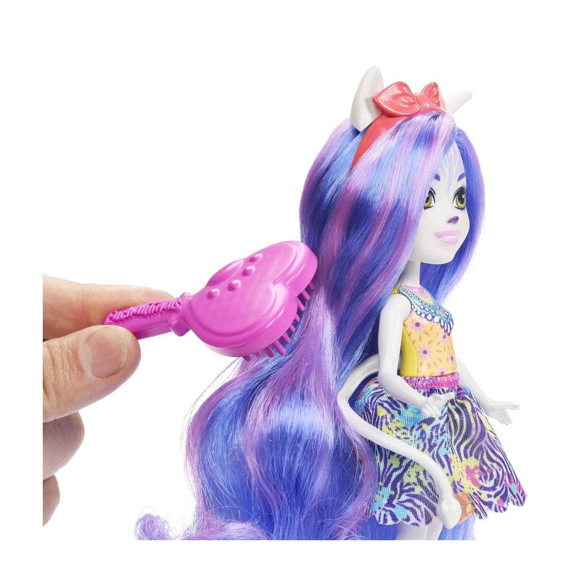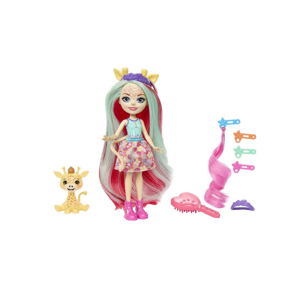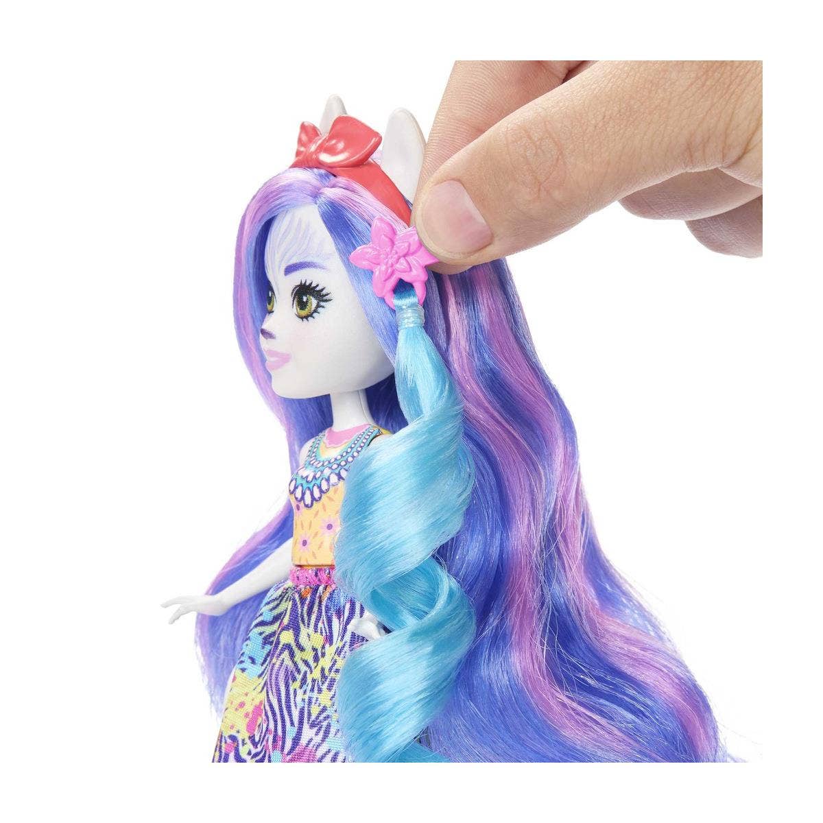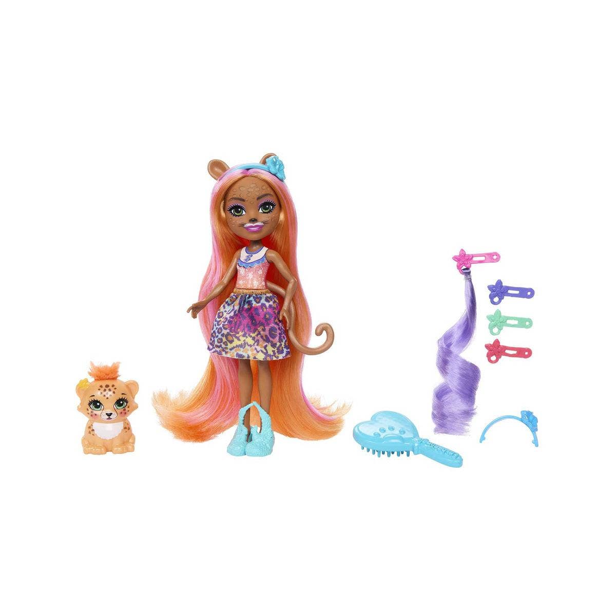 Flott Enchantimals dúkka með gæludýri og hárskrauti.