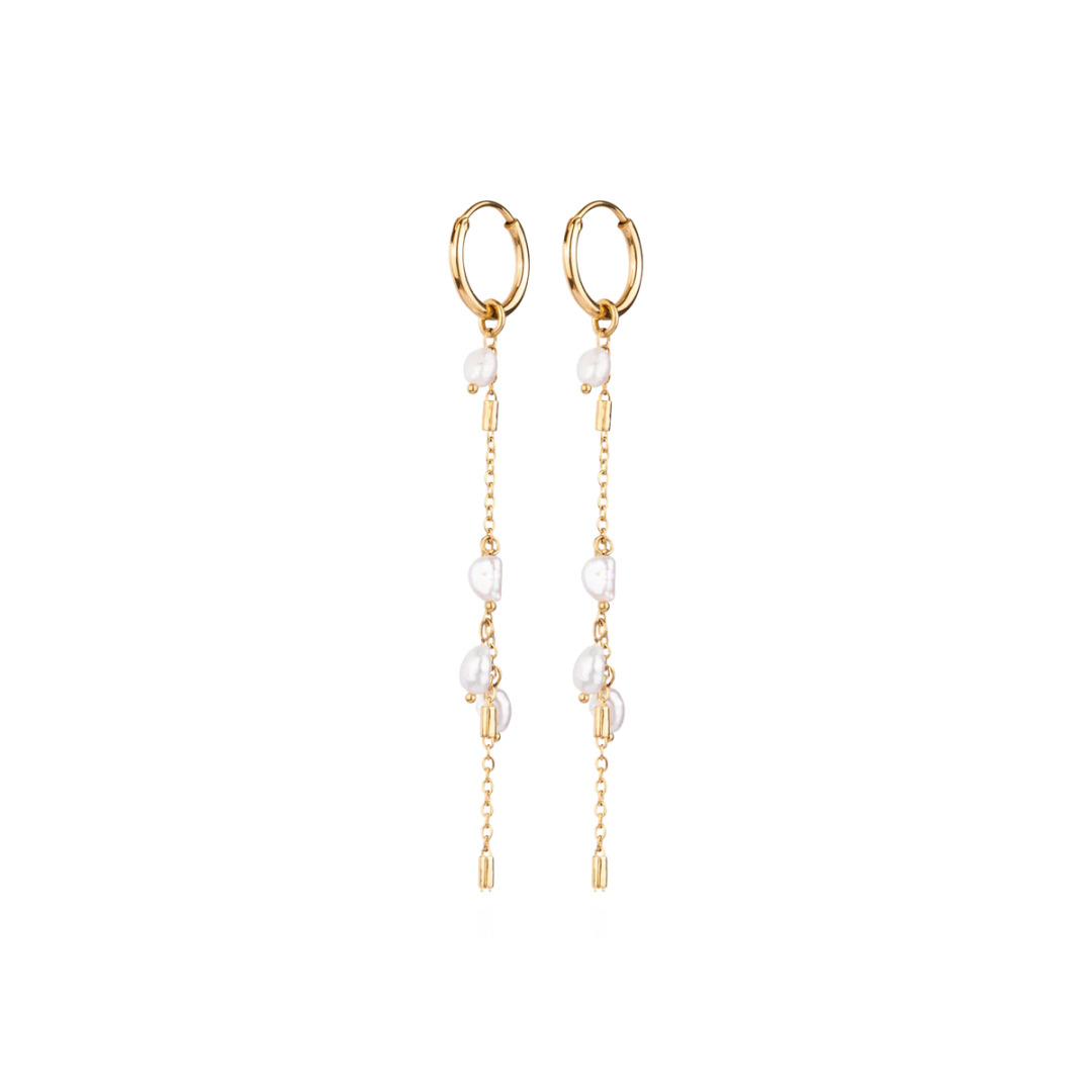 Stærð: 16 mm og 7 cm lengd á keðjuEfni: Ryðfrítt stál og ferskvatnsperlurEyrnalokkum fæst ekki skilað ef innsiglið er rofið. | Rose eyrnalokkar