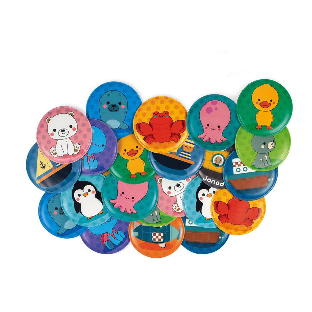 Baðleikfang frá Janod í formi minnisspils með fljótandi myndum.