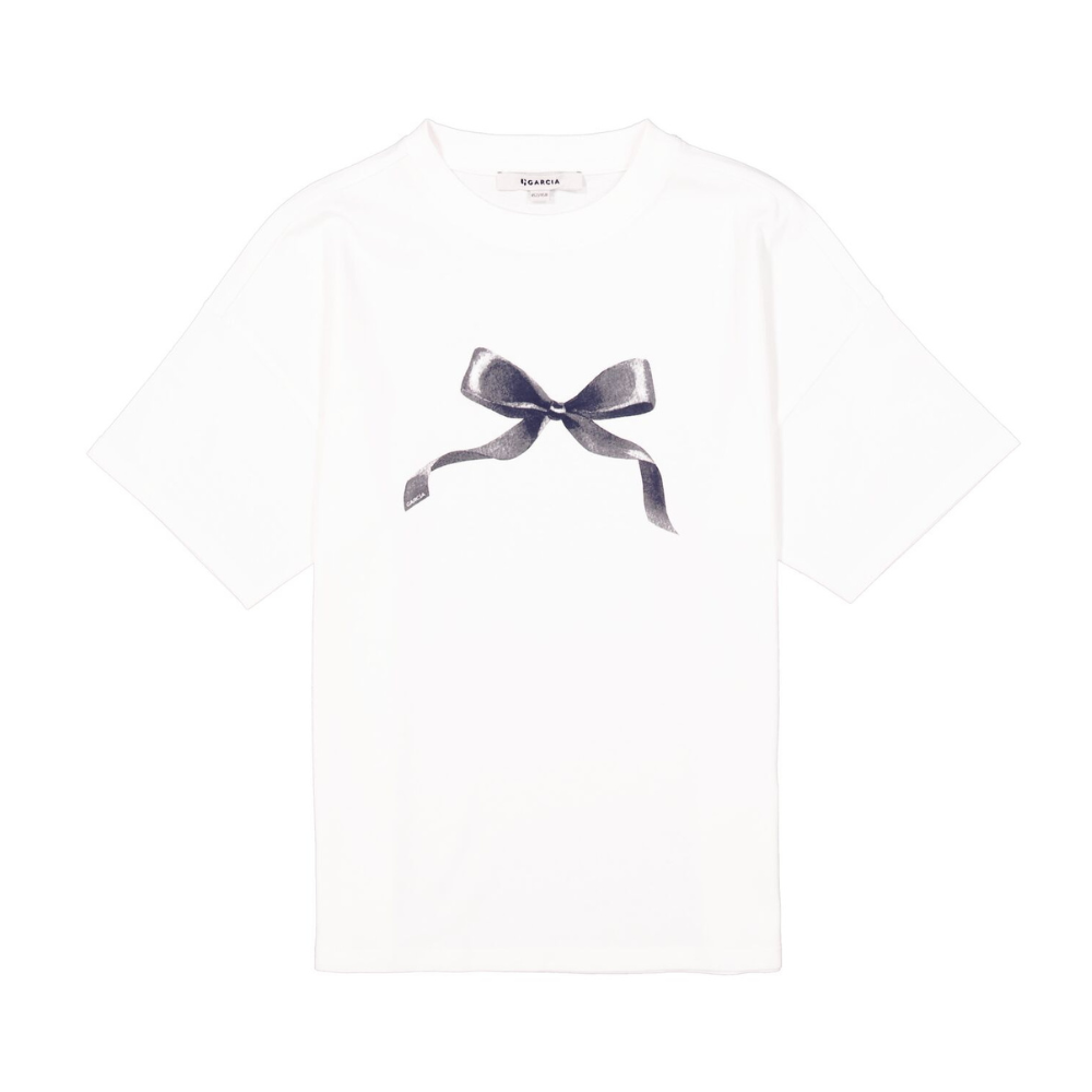 Hvítur stuttermabolur frá Garcia með mynd að framan. 100% bómull. I52601