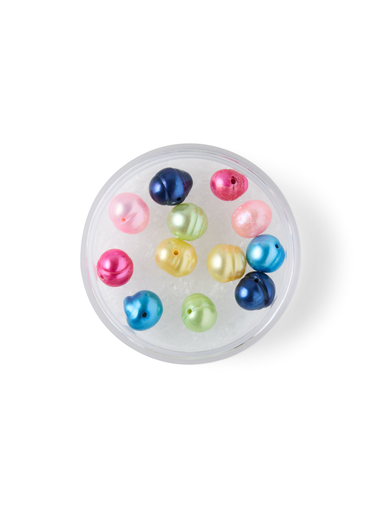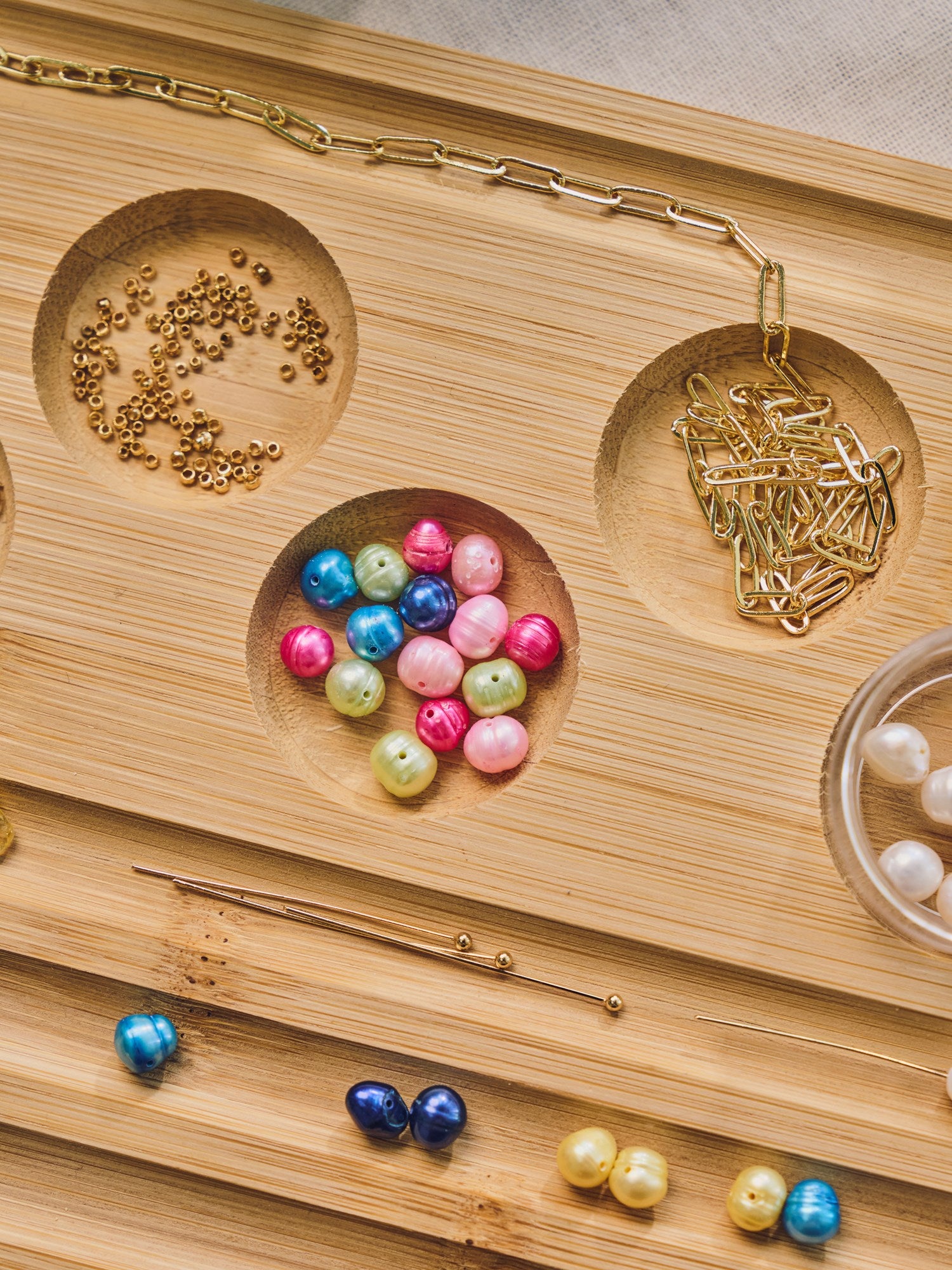 Glistening treasures "Imagine the elegance of handmade jewellery," Anna says as she admires the freshwater beads. "A charming way to express creativity," Clara adds, appreciating their varied hues.