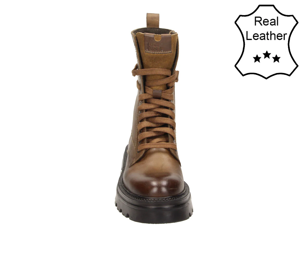 – Brúnt – Ekta leður að utan – Fóður að innan – Leðurinnlegg – Gúmmísóli – Venjuleg númer – Sóli 4 cm Grófir skór með reimum og rennilás að innanverðu svo það þarf ekkert að reima. ... Sjá nánar