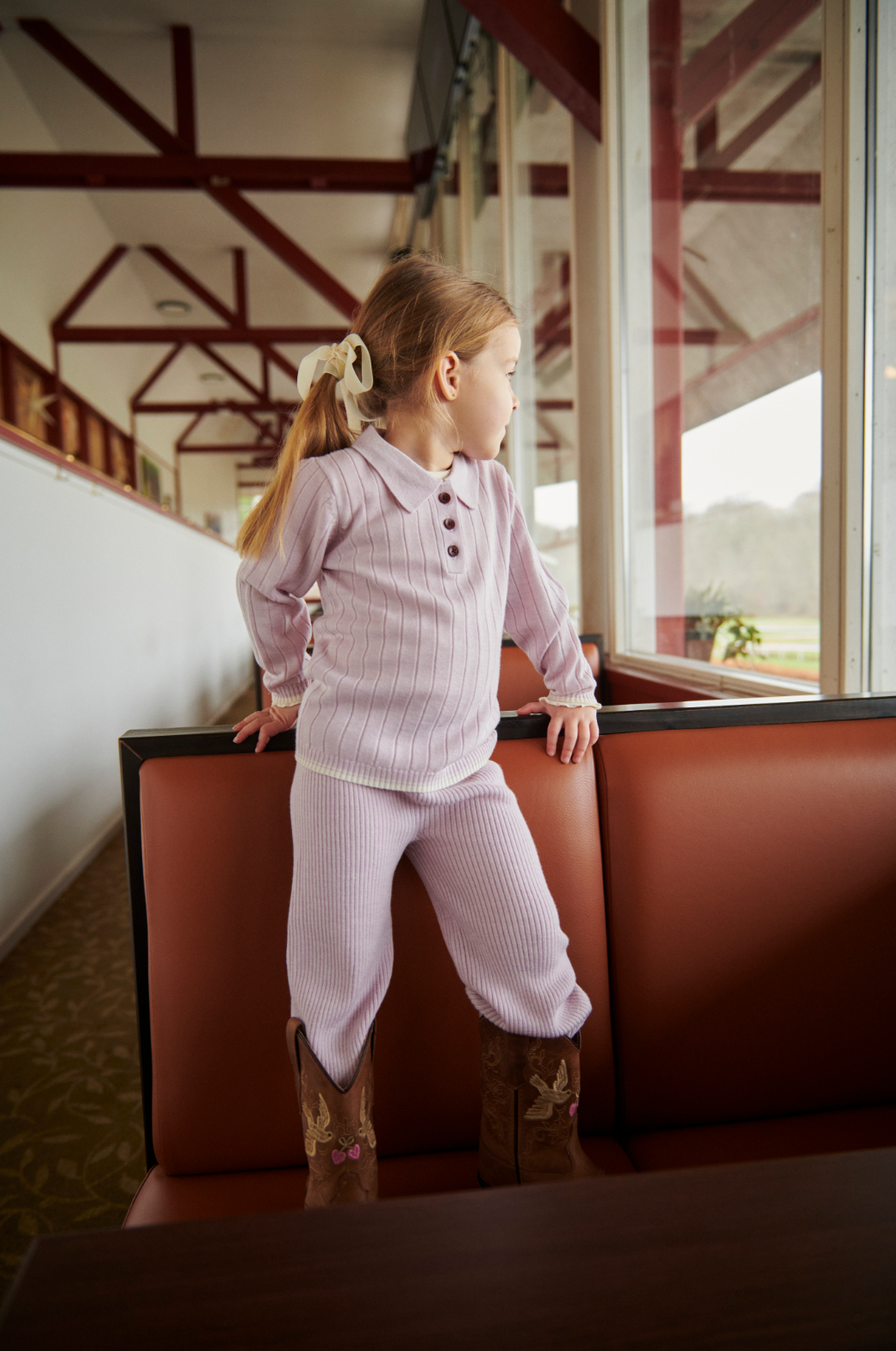 Mjúkar, útvíðar prjónabuxur frá Copenhagen Colors. Buxurnar eru með teygju í mittið. 100% merino ull.