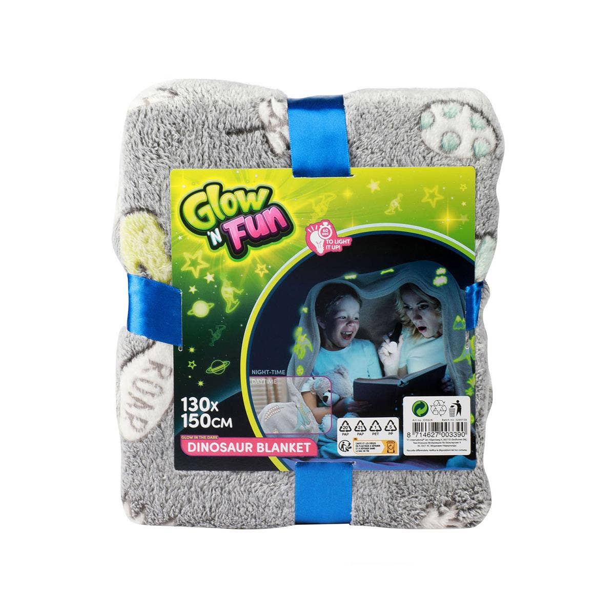 Skemmtilegt, mjúkt, risaeðluteppi sem lýs í myrkri.