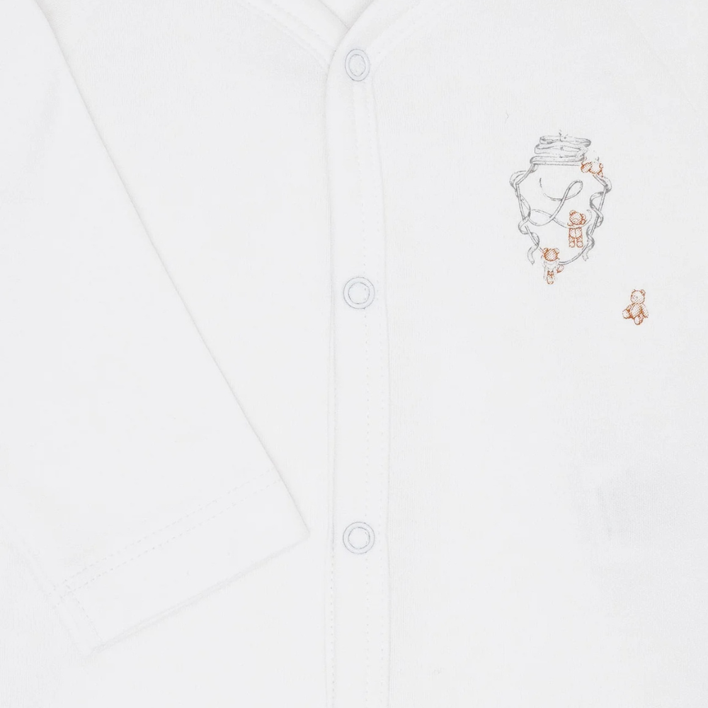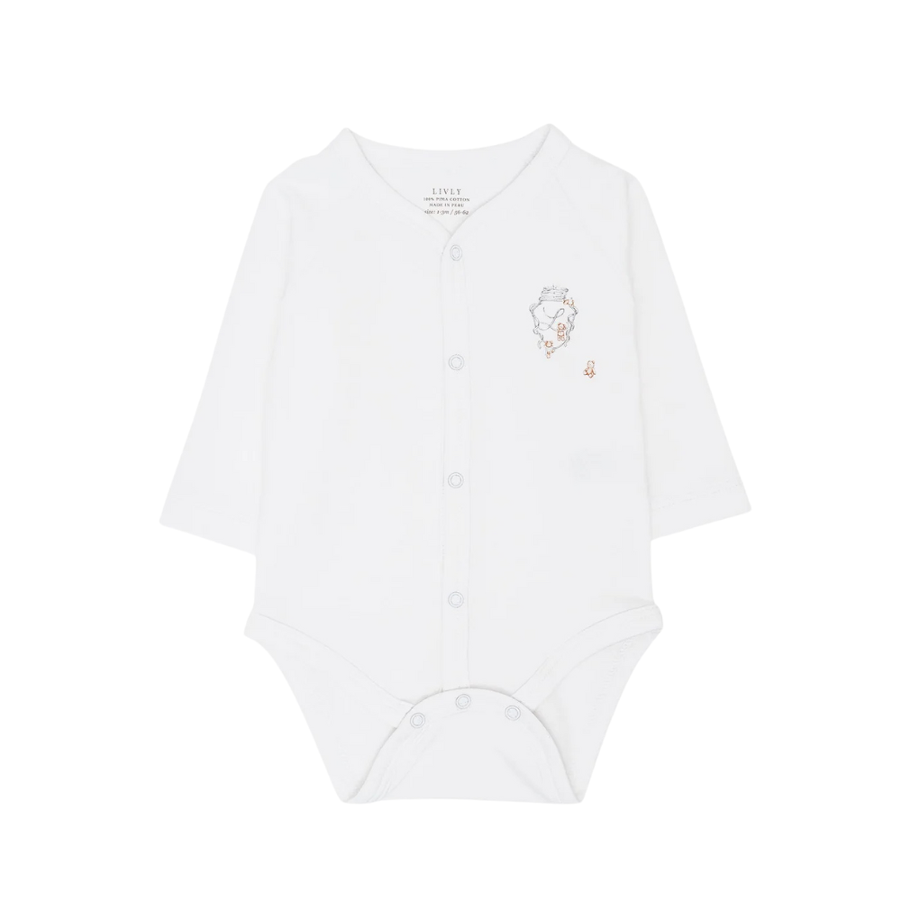 Hvít skáhneppt samfella frá sænska merkinu Livly. Samfellan er úr hágæða, lífrænni Pima bómull. 100% Pima bómull.