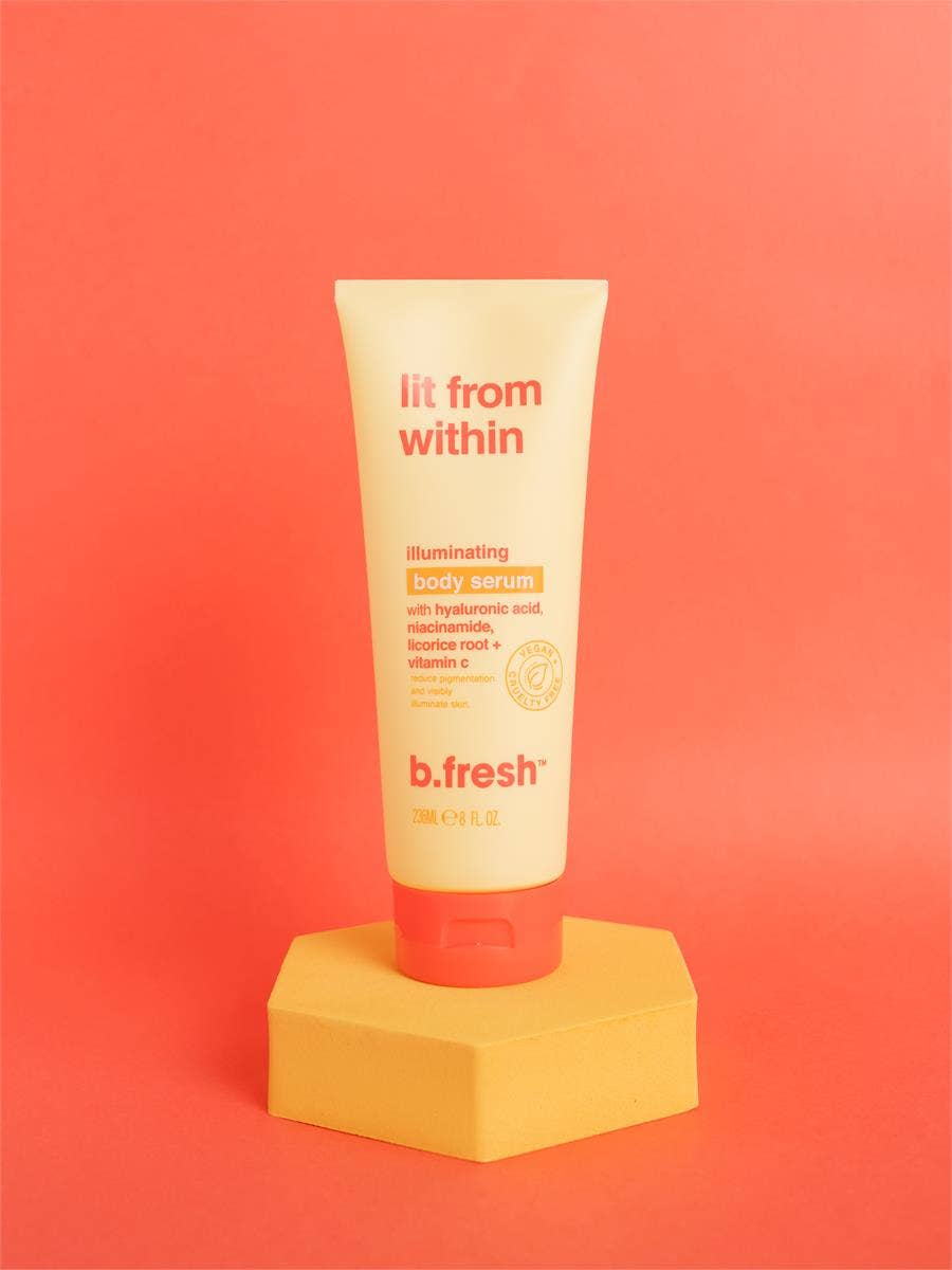Birtandi rakaserum fyrir líkamann. Hyaluronic sýra, niacinamide, lakkrisrót og c vitamin vinna saman að jafnari og bjartari húð auk þess að draga úr litabreytingum.