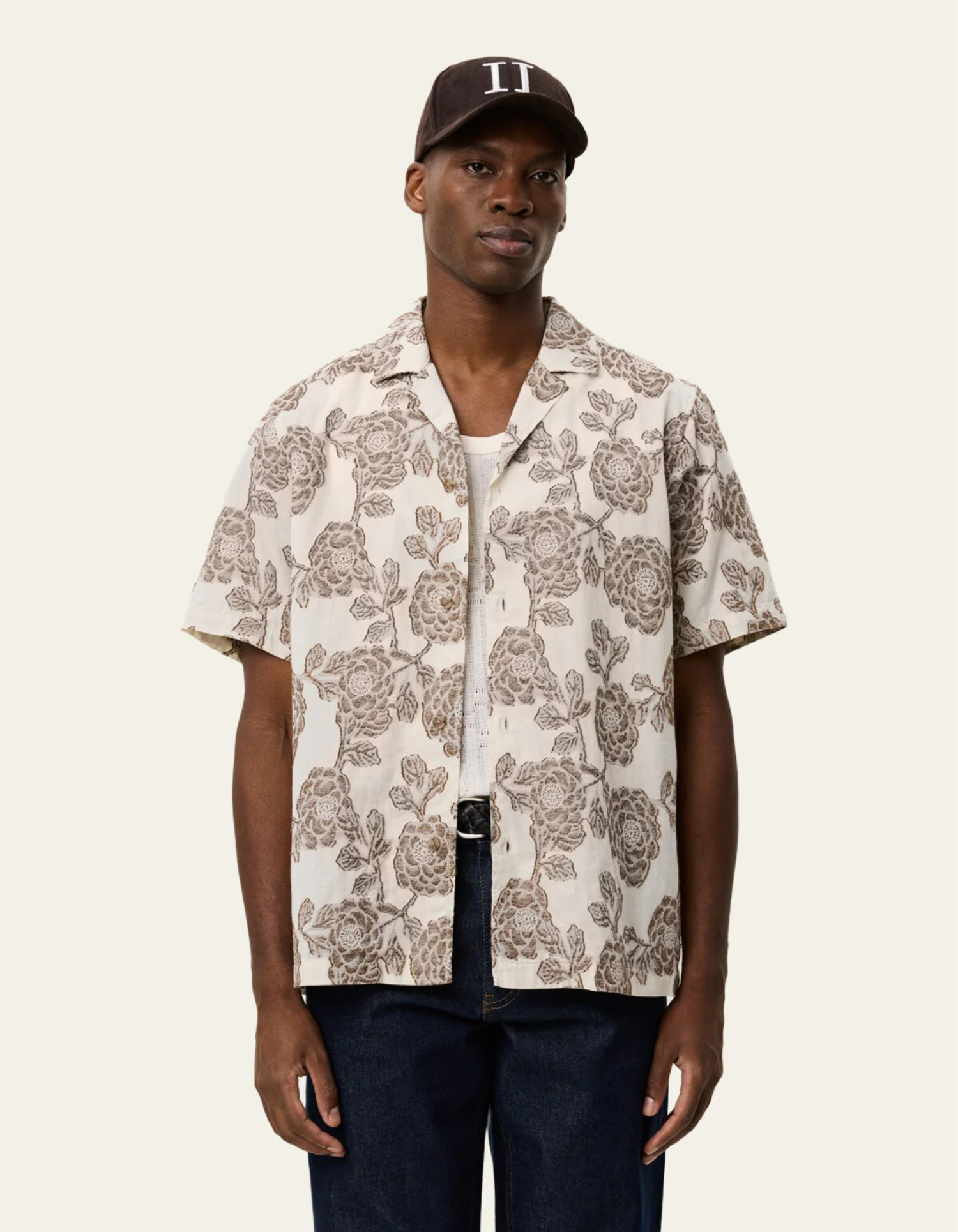 A loose short sleeve shirt cut from lightweight cotton jacquard with an intricate floral pattern. Designed with a relaxed drape, camp collar and bone-look buttons for a refined finish. 100% ... Sjá nánar