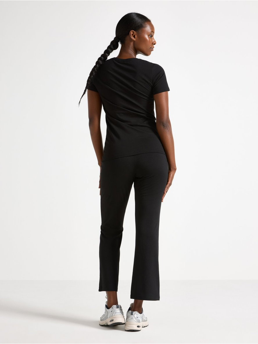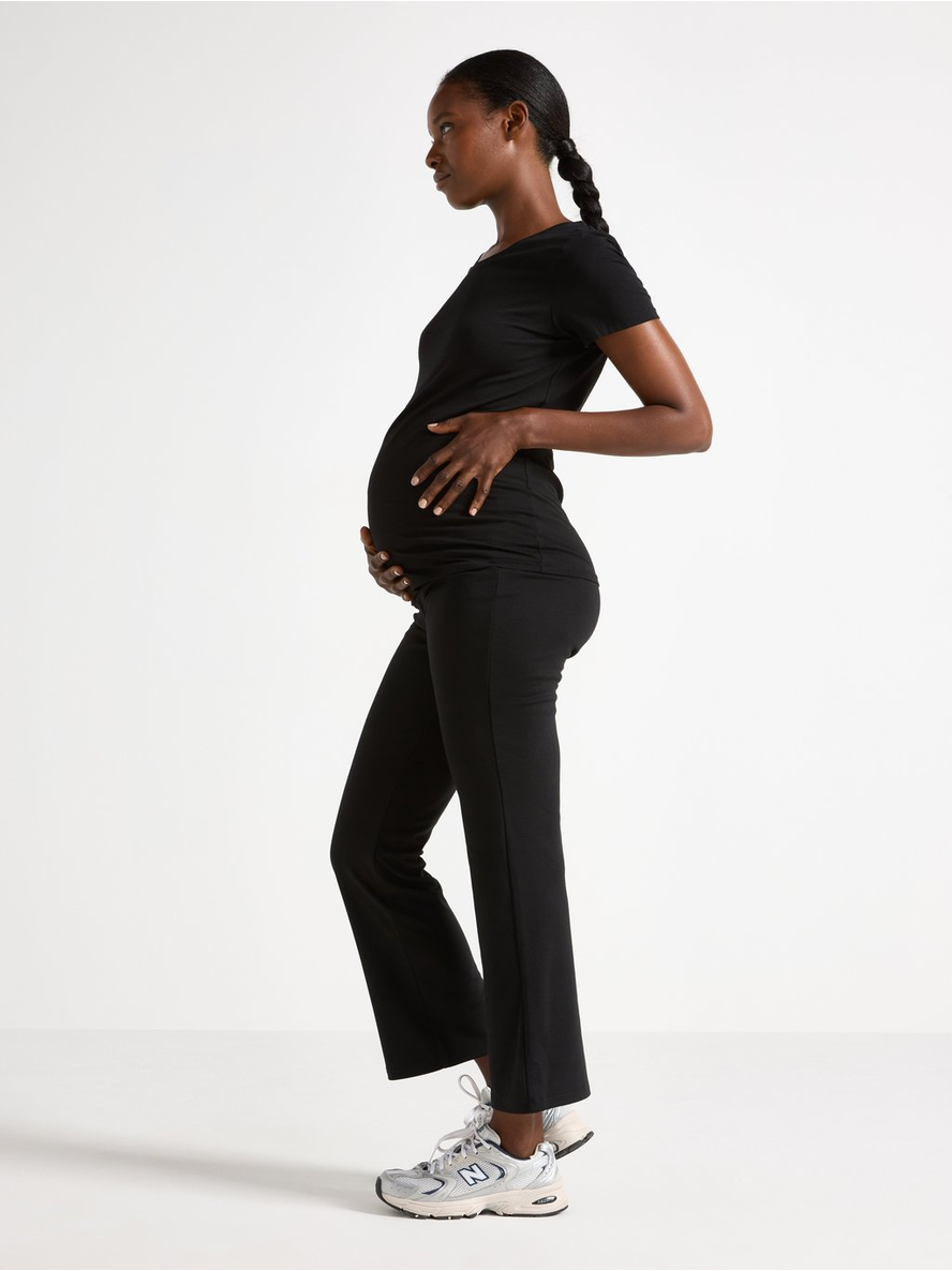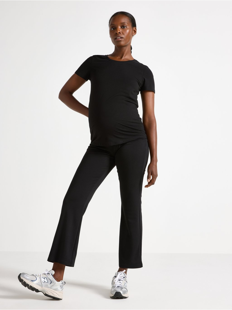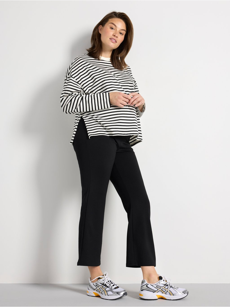 Comfy black jersey trousers with an elastic waist with room for the growing belly. Wide trim to waist Slightly flared leg Soft, stretchy jersey in recycled polyester Made with 50% ... Sjá nánar