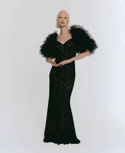 Darby er einstakur síðkjóll sem er gerður úr flauels-blúnduefni. Darby er fullkominn kjóll fyrir öll hátíðleg tilefni.