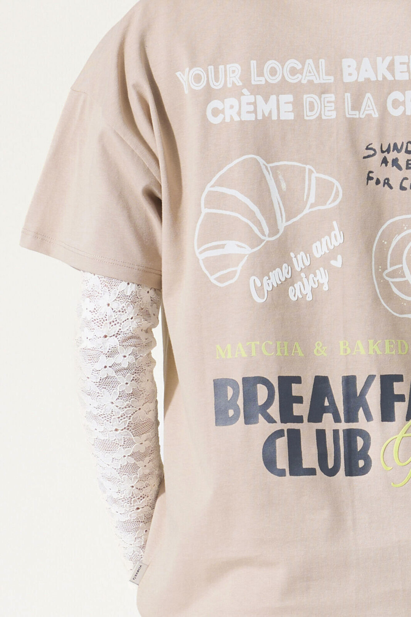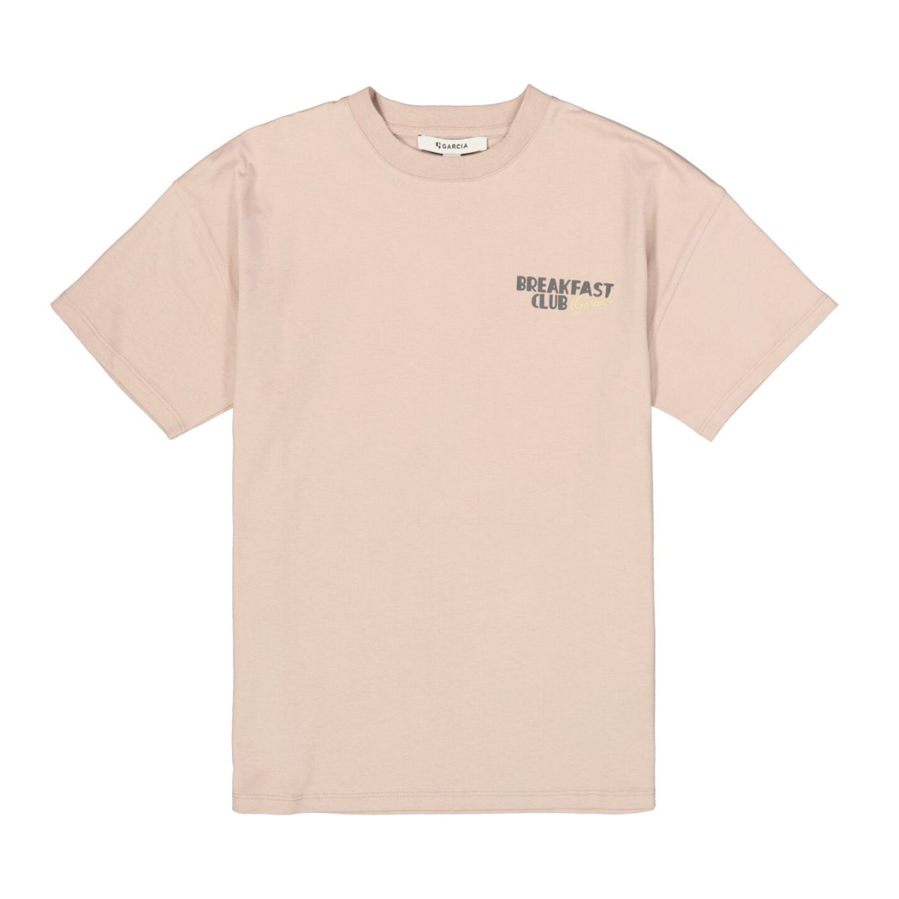 Ljós brúnn stuttermabolur frá Garcia með stórri mynd að aftan. 100% bómull.