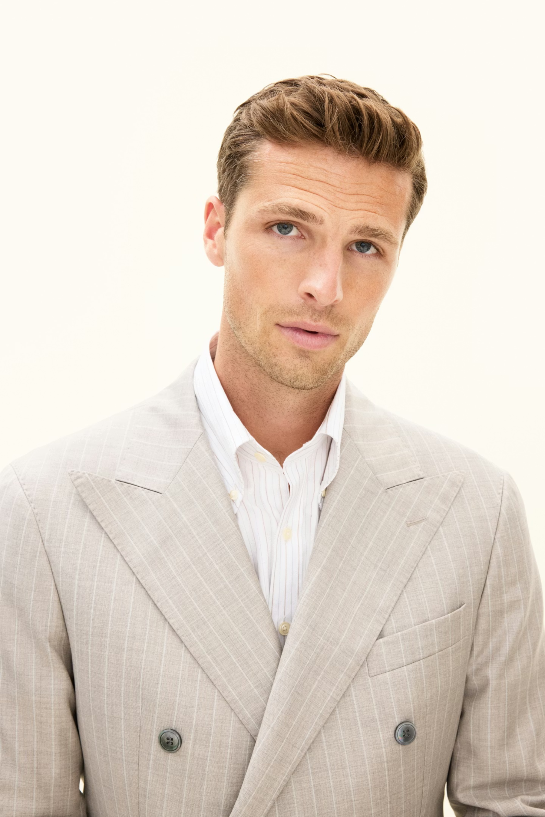 Blazer A double-breasted blazer in 100% wool, featuring an elegant striped pattern. The soft construction provides a smooth drape and refined feel. The double-breasted front highlights its ... Sjá nánar