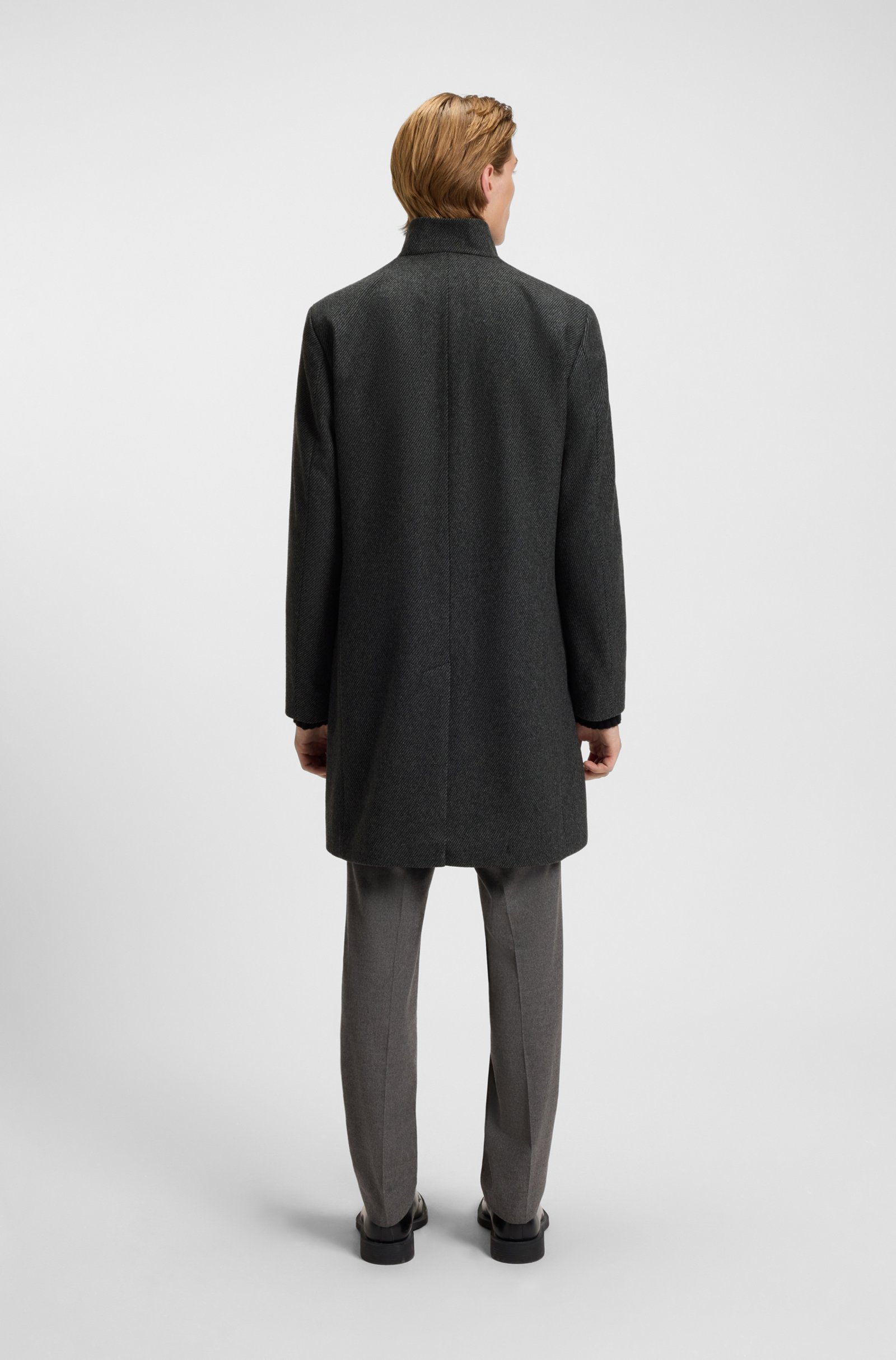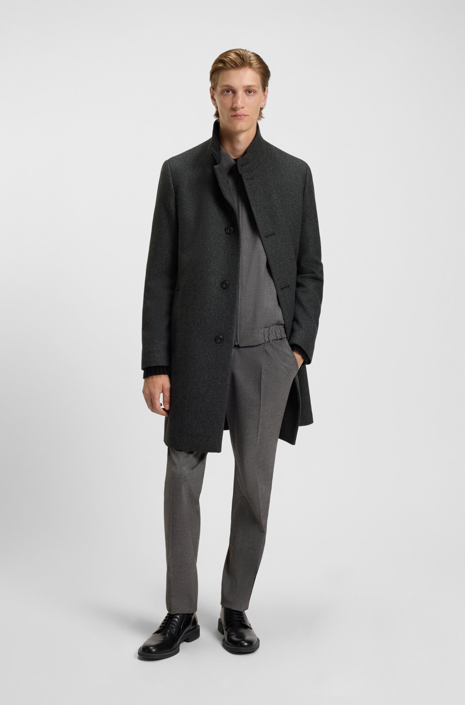 With its regular fit and stand collar, this HUGO Menswear coat is ideal for layering over business looks. Crafted in a warm wool blend. Regular fit Stand collar Number of buttons: 4 or more ... Sjá nánar