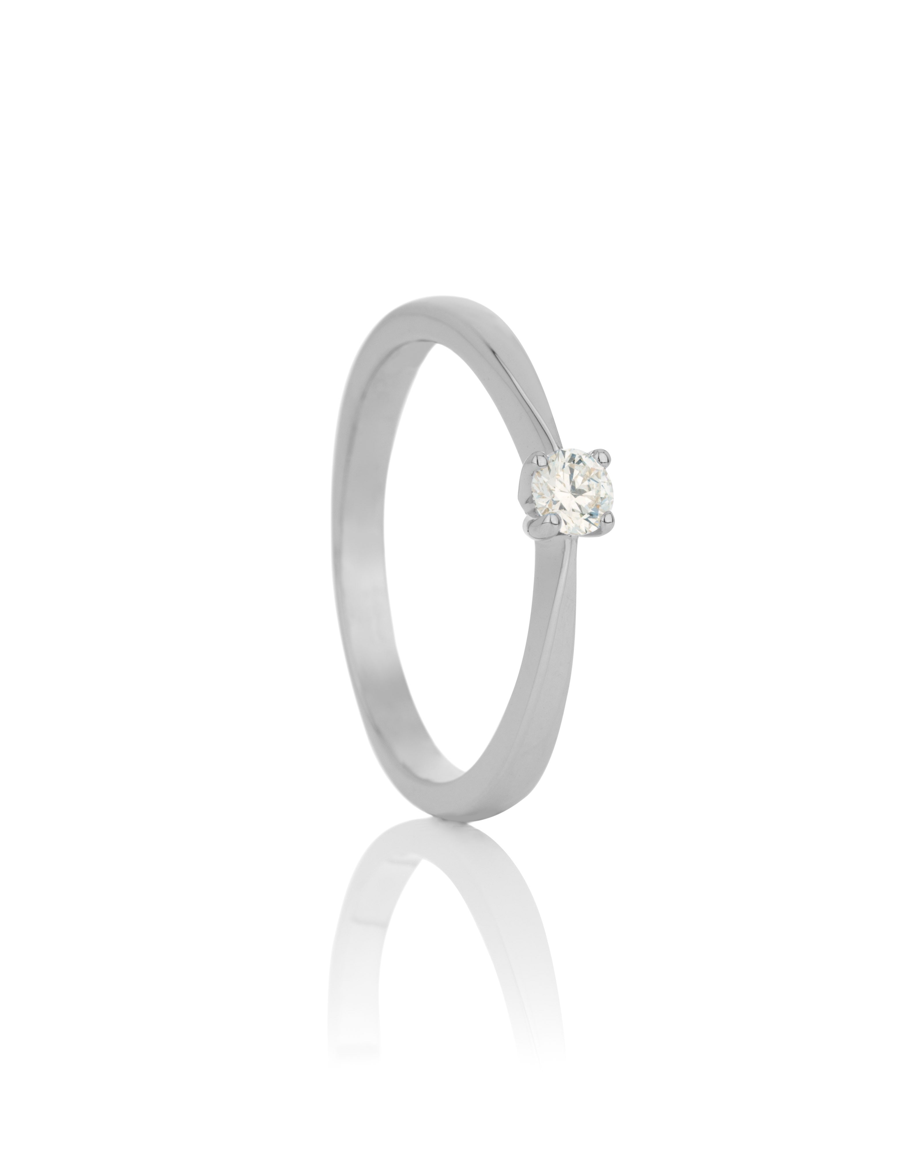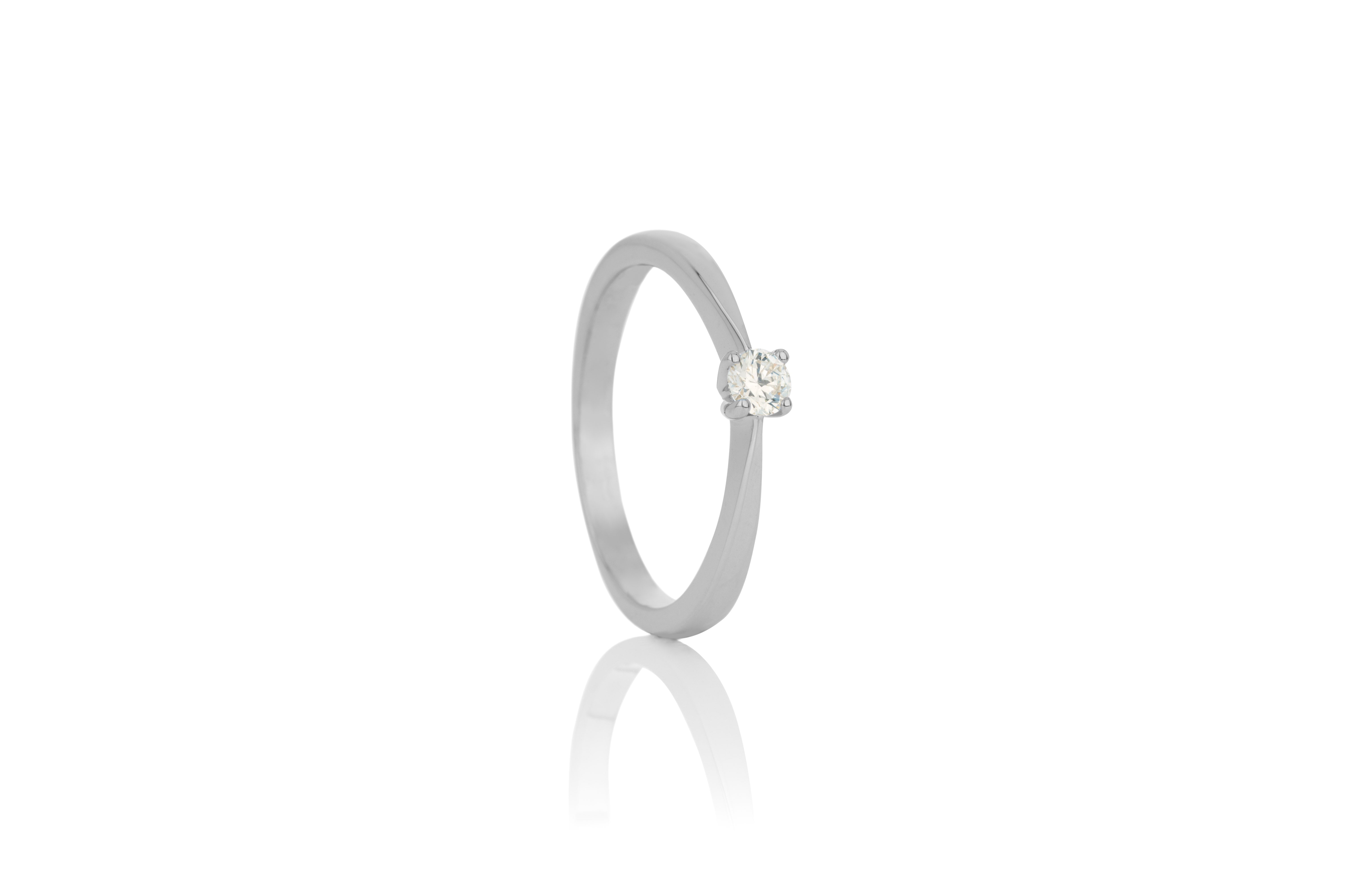 14 kt gull Demantshringur  Vr: 110 102BR6 Fallegur og klassískur demantshringur með 4 klóm og litlu hjarta inní baug.  Efni: Hvítagull Karöt: 14 Yfirborð: Pólerað   ... Sjá nánar