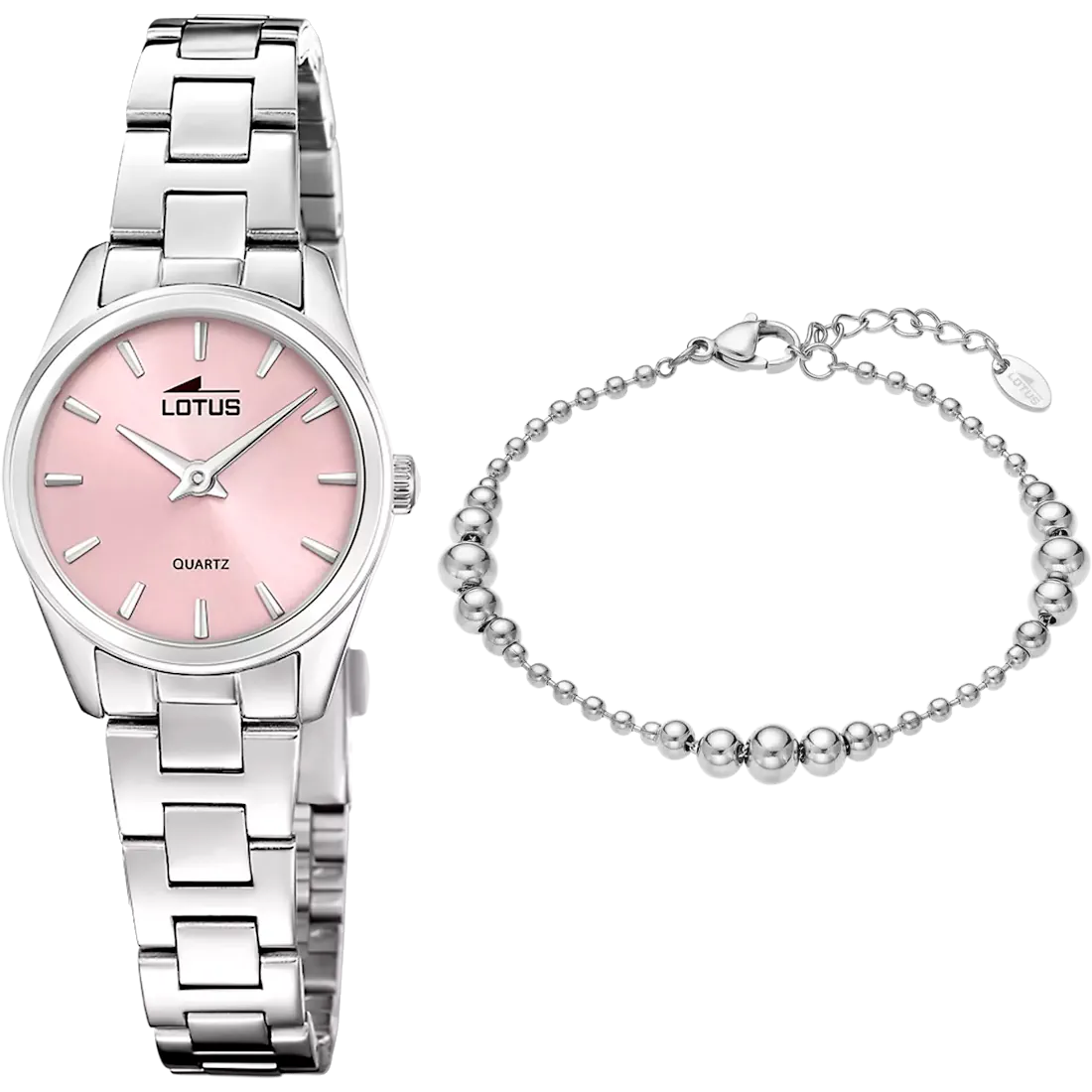 Úr: Úrkassi: 26mm – stál Úrverk: Rafhlaða Vatnsvörn: 50M Skífa: Bleik – vísar Gler: Hert gler Keðja: Stál Ábyrgð: Tveggja ára Armband: Efni armbands: Stál