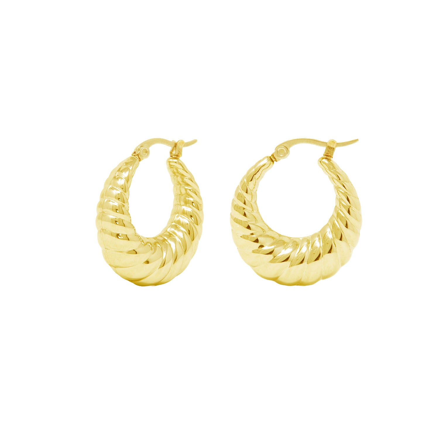 Eyrnalokkarnir eru úr gullhúðuðu stáli og eru um 27 mm á hæð.