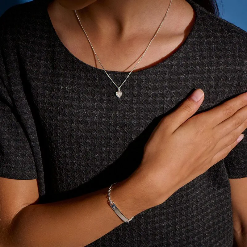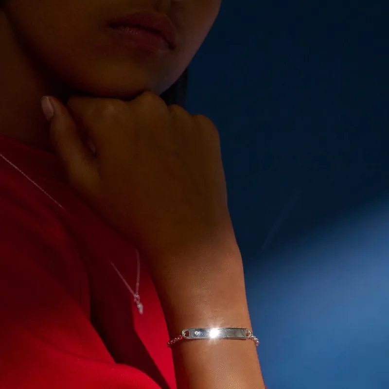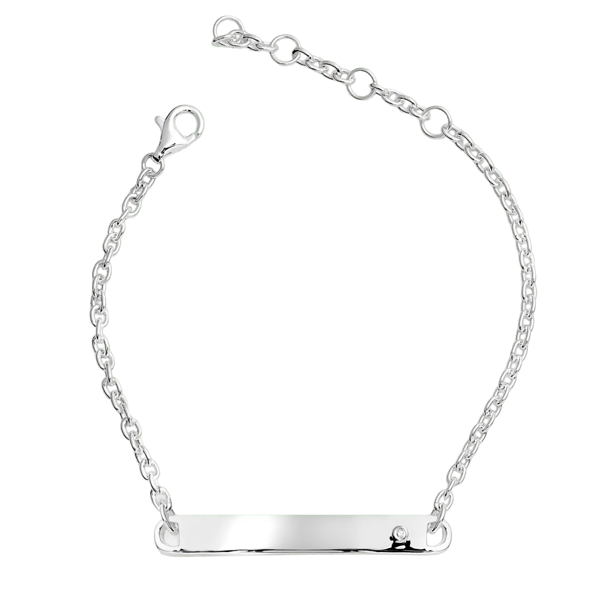 Glæsilegt barnaarmband með alvöru demanti. Efni armbands: Silfur með platínuhúðun Steinn: 1 demantur - 0,07ct Aldursbil: Börn til fullorðinna Lengd: 15-18cm