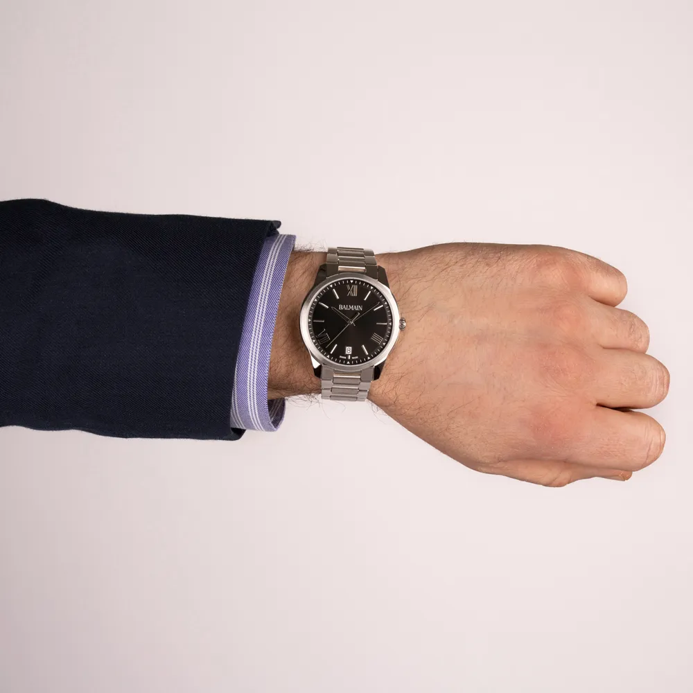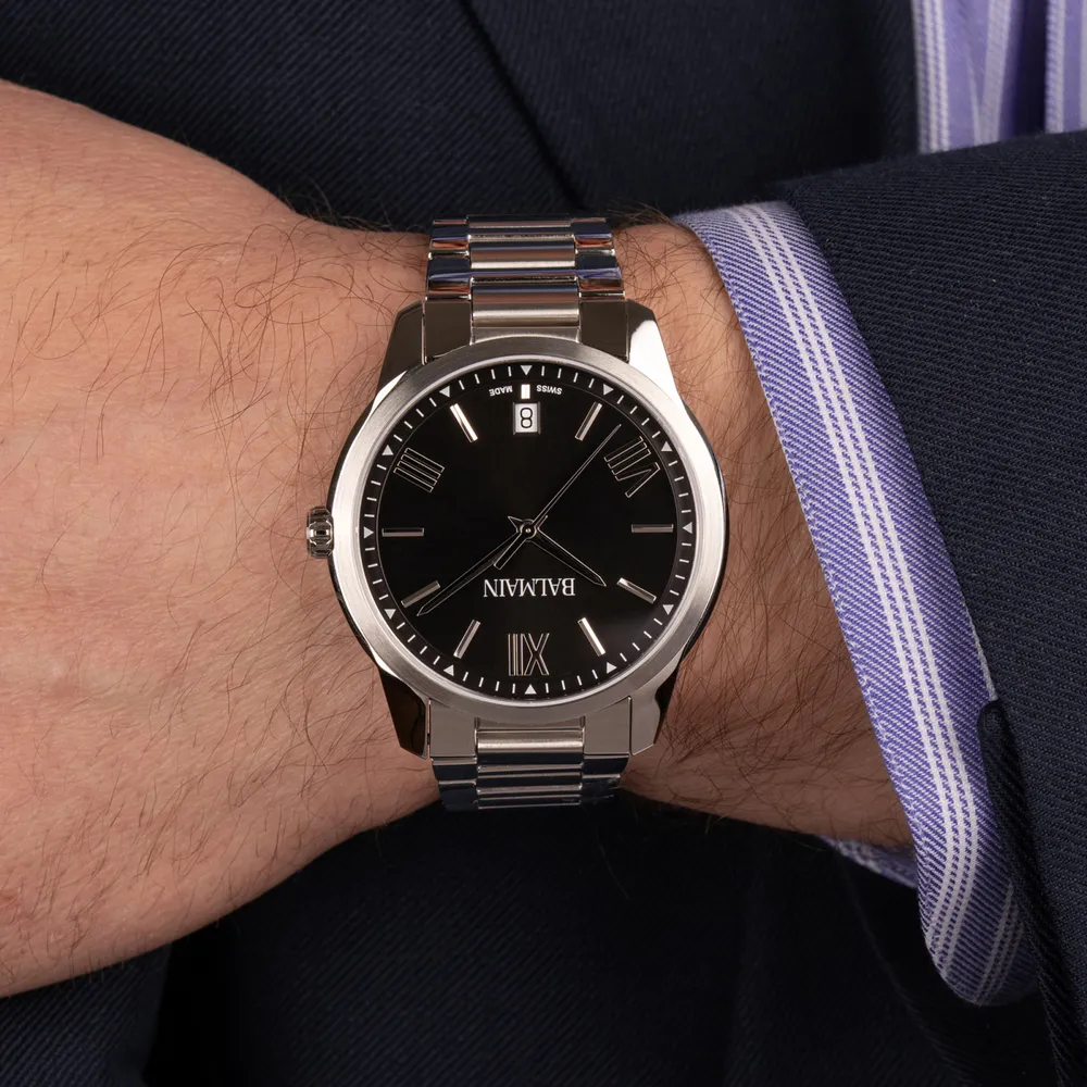 Úrkassi: 40mm – stál Úrverk: Rafhlaða – svissneskt Vatnsvörn: 50M Skífa: Svört – áfest strik – dagsetning hjá kl 6 – vísar Gler: Safírgler – speglunarvörn Keðja: Stál – öryggislás Ábyrgð: ... Sjá nánar