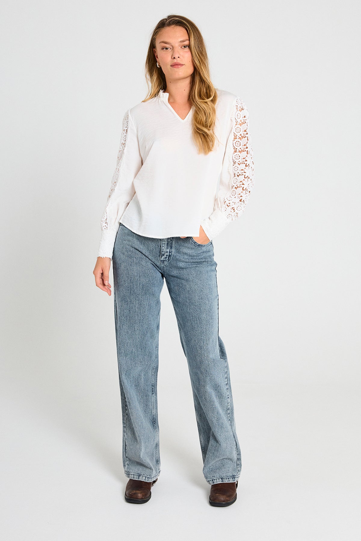 Fallegar blússur frá Free/Quent með blúndu ermum. 62% viscose 35% polyester 3% teygja